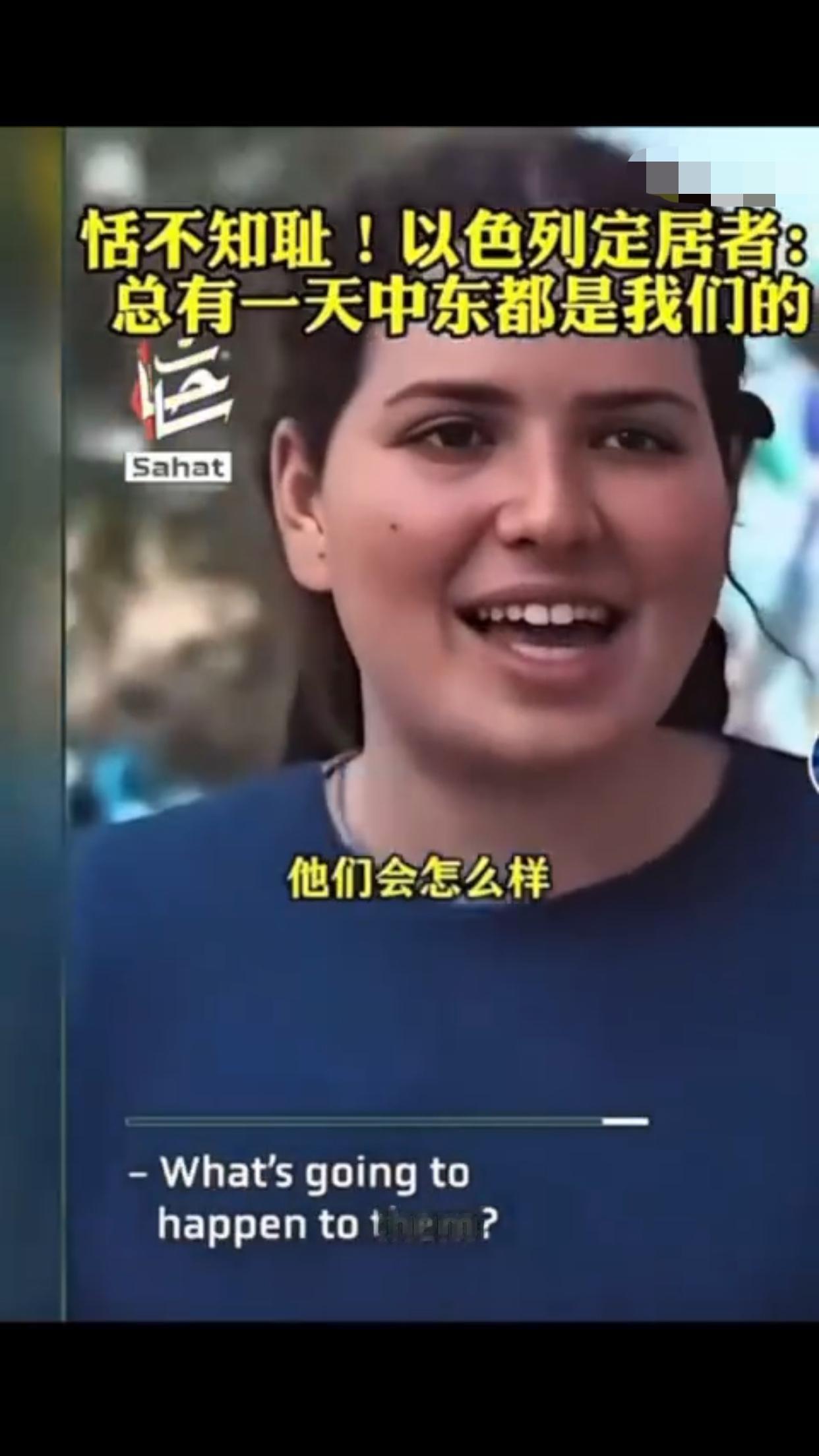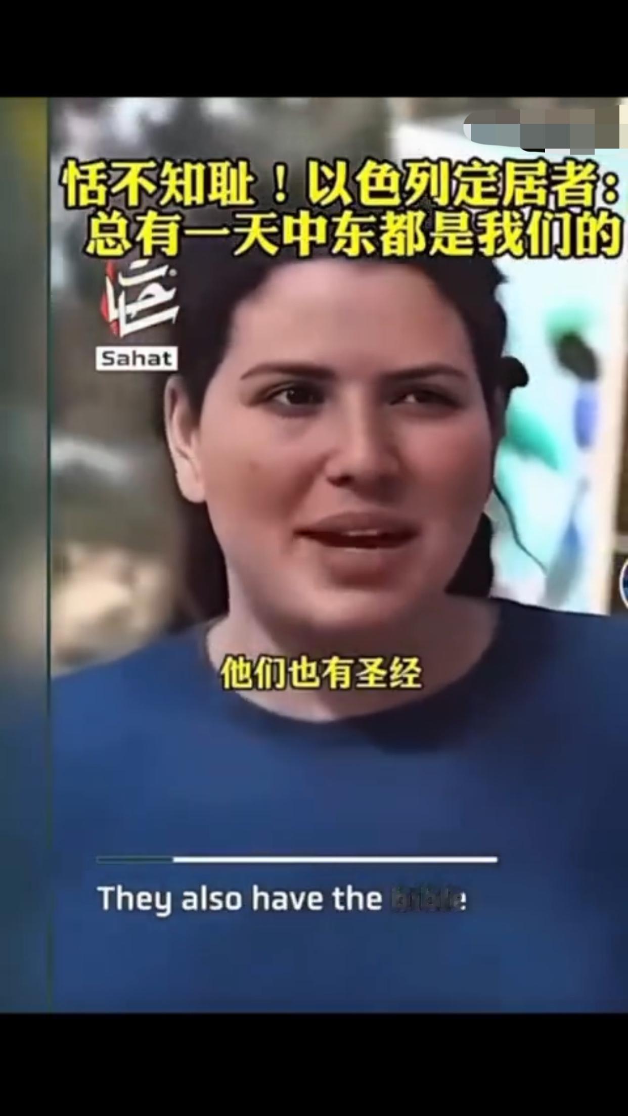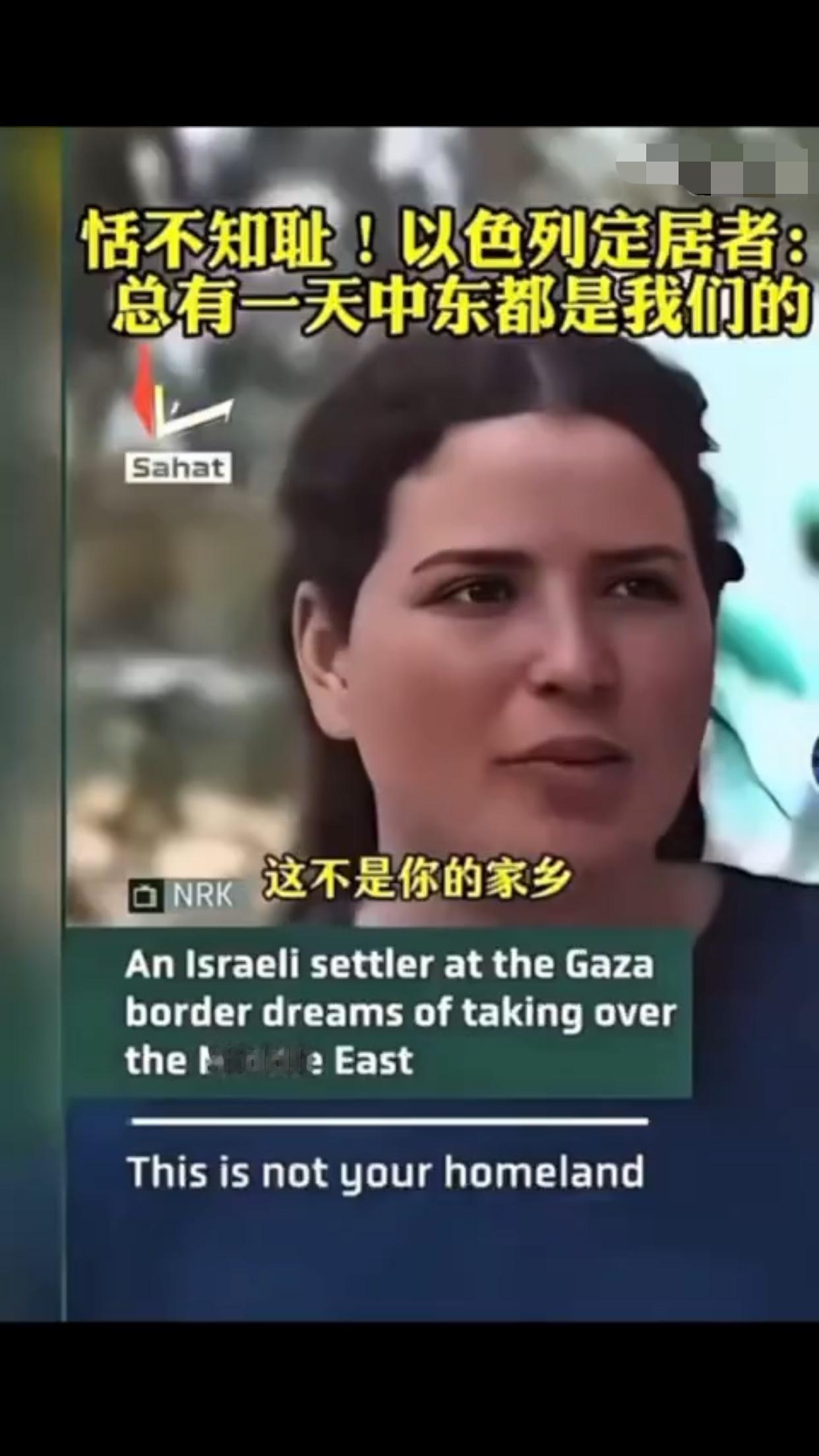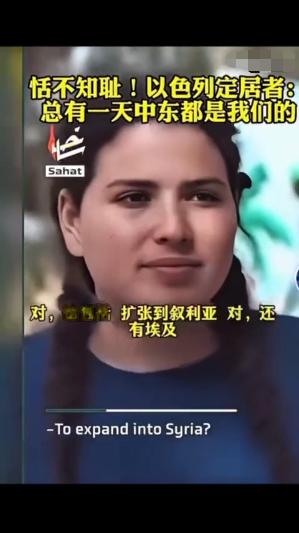 有一位以色列定居者表示:“这是犹太人的家园,总有一天这一切都会是我们的,阿拉伯人也知道,他们也有圣经,而我们的目标就是把以色列从现在的版图扩张出去,包括扩张到叙利亚、埃及、黎巴嫩、约旦的一部分,我对这些计划感到非常激动,即使这意味着我们要吞并那些已经存在的国家,这要怎么实现,这些国家住着的人会怎么样,这是个很好的问题,我不知道,但我知道这一定会实现,因为这不是你的家乡,这是犹太人的家园。”