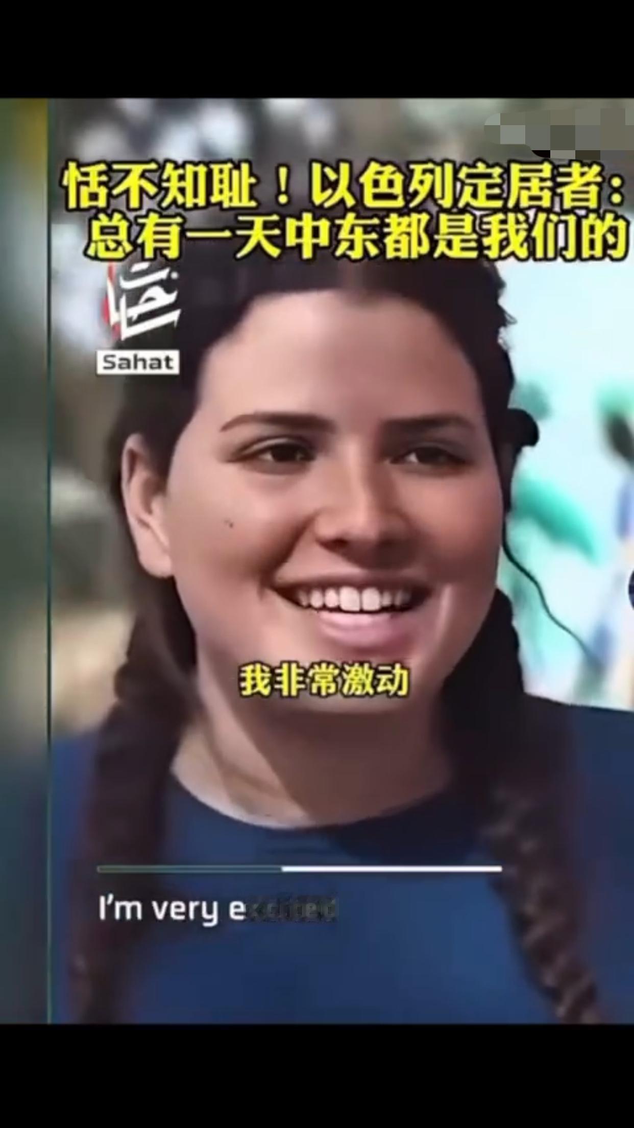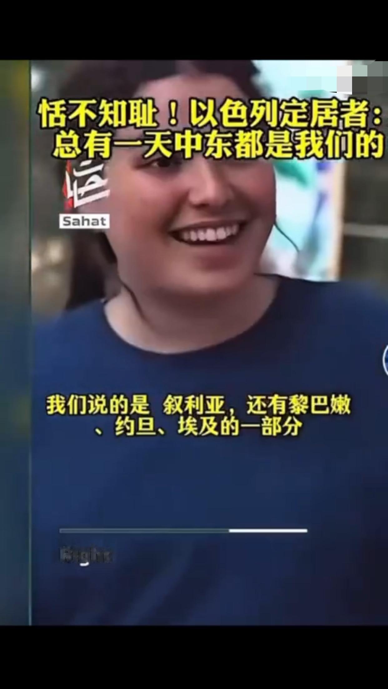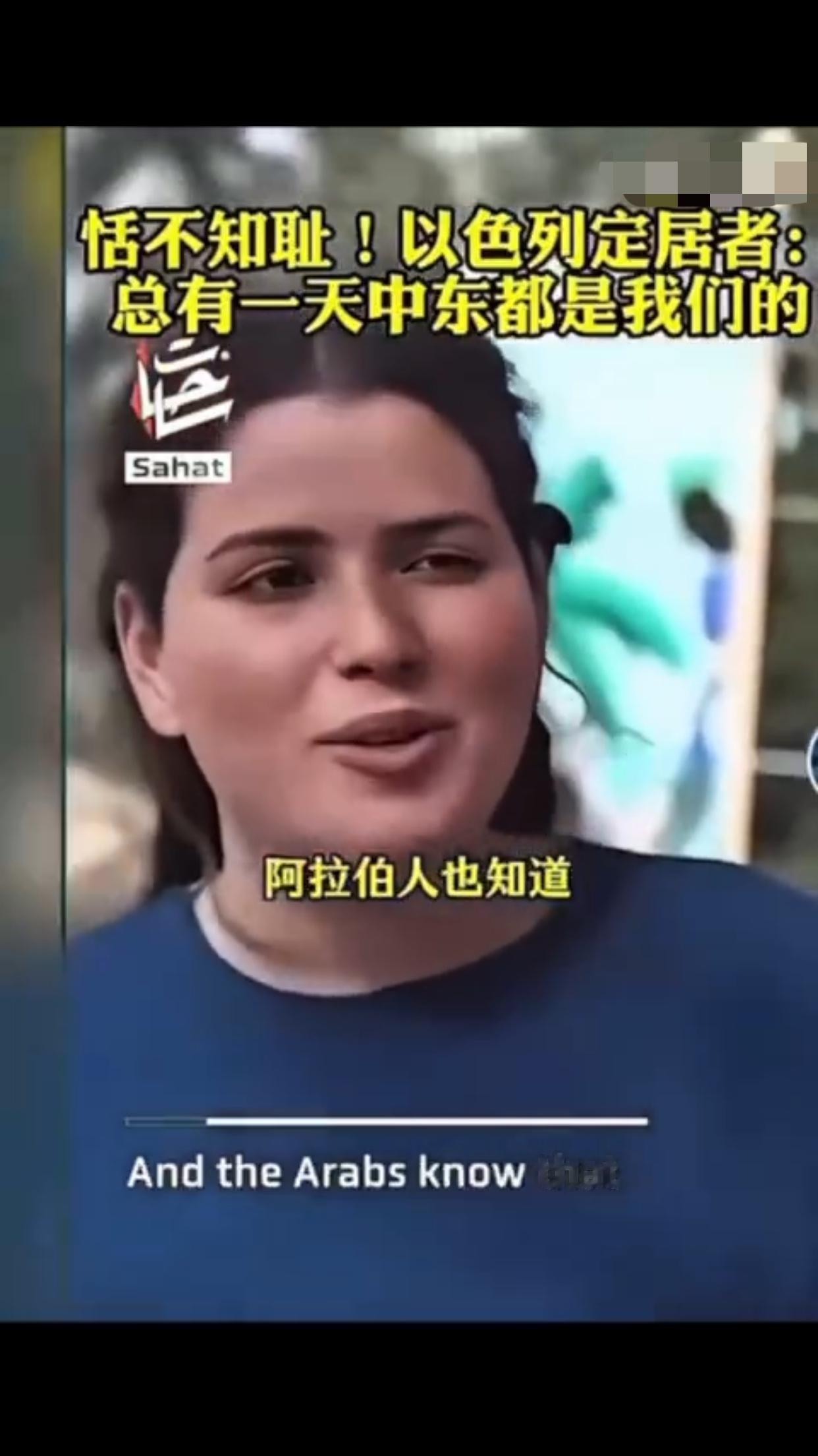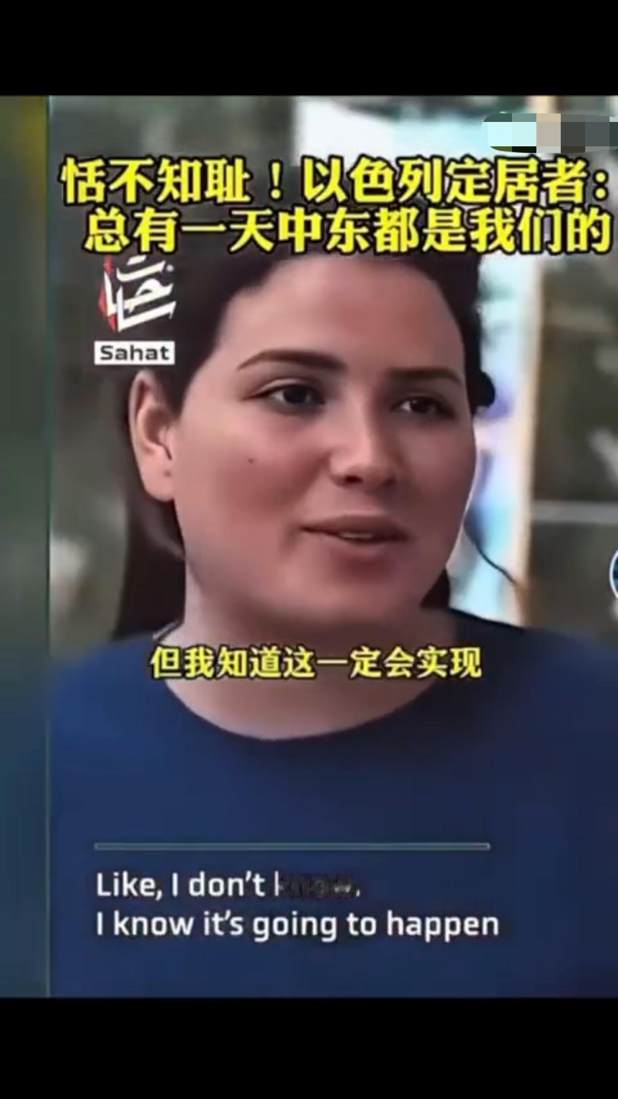 有一位以色列定居者表示:“这是犹太人的家园,总有一天这一切都会是我们的,阿拉伯人也知道,他们也有圣经,而我们的目标就是把以色列从现在的版图扩张出去,包括扩张到叙利亚、埃及、黎巴嫩、约旦的一部分,我对这些计划感到非常激动,即使这意味着我们要吞并那些已经存在的国家,这要怎么实现,这些国家住着的人会怎么样,这是个很好的问题,我不知道,但我知道这一定会实现,因为这不是你的家乡,这是犹太人的家园。”