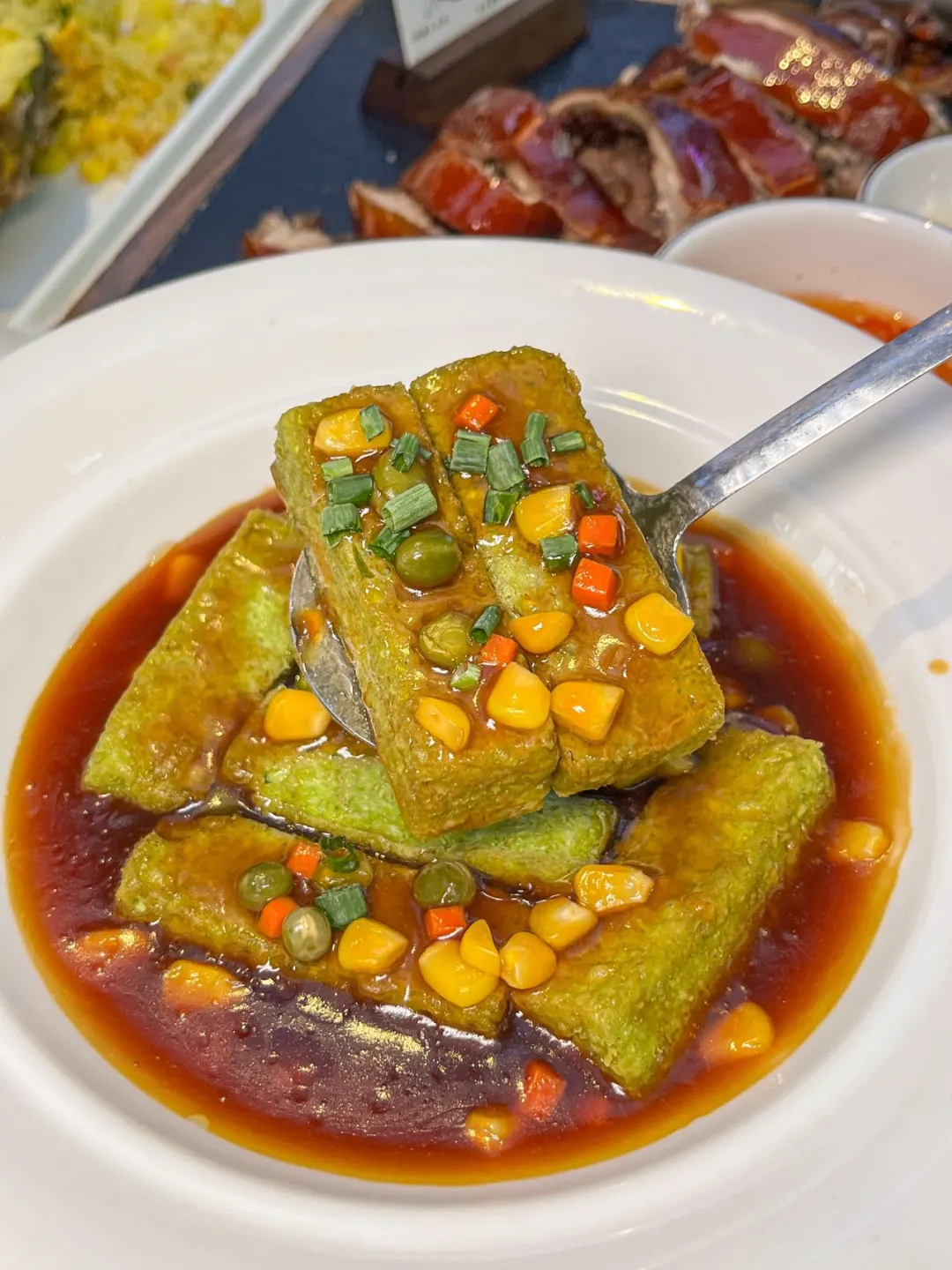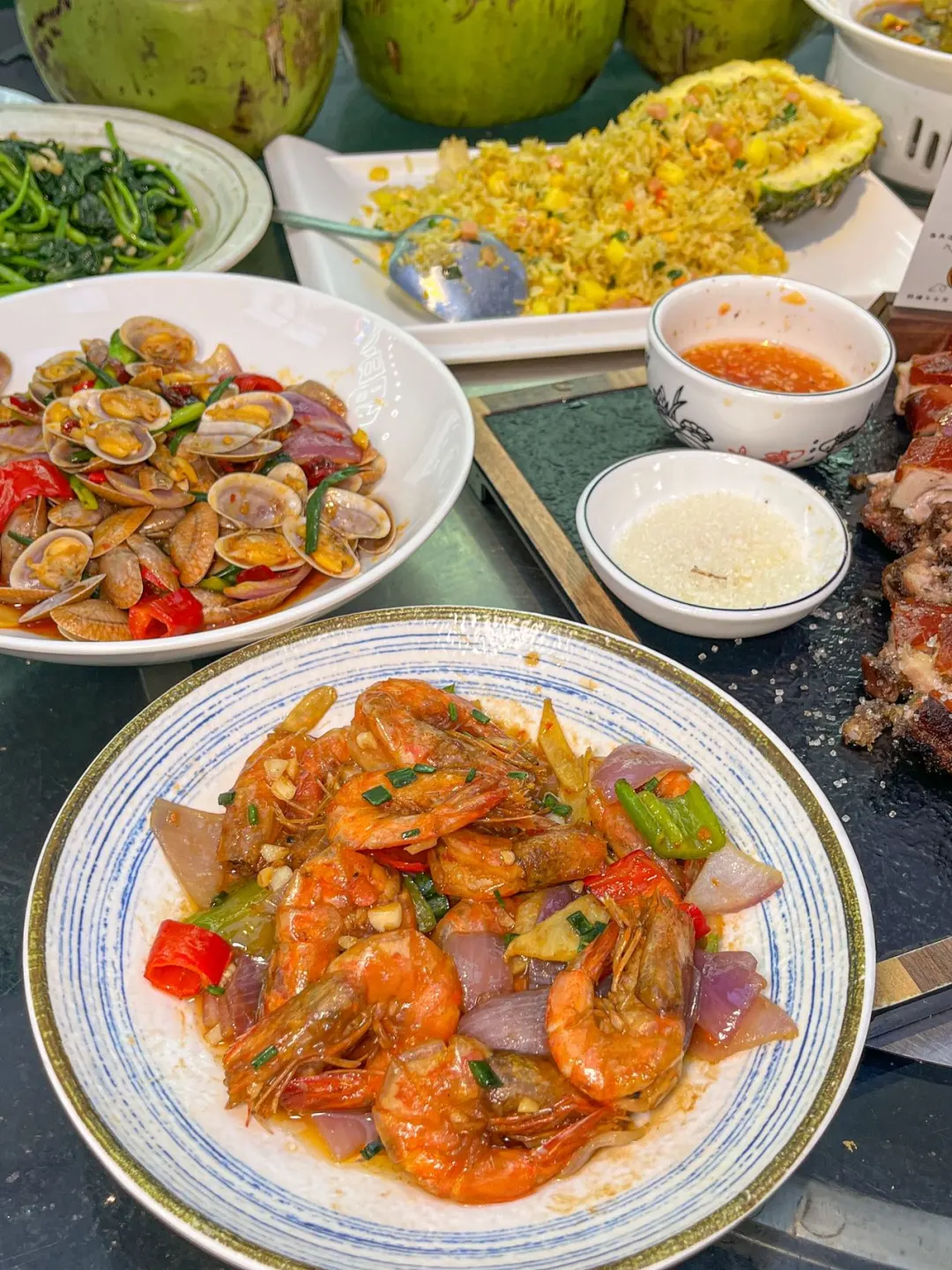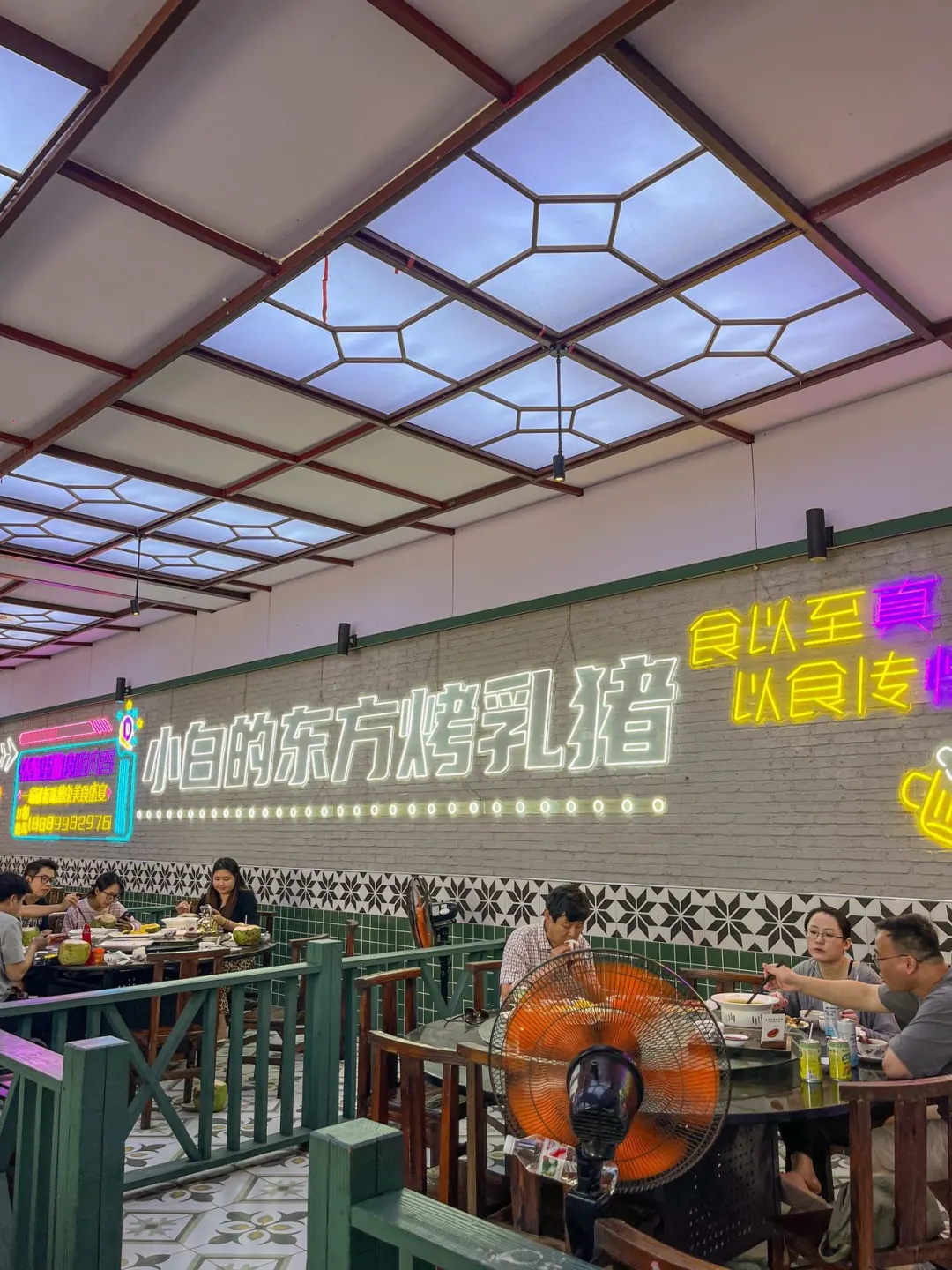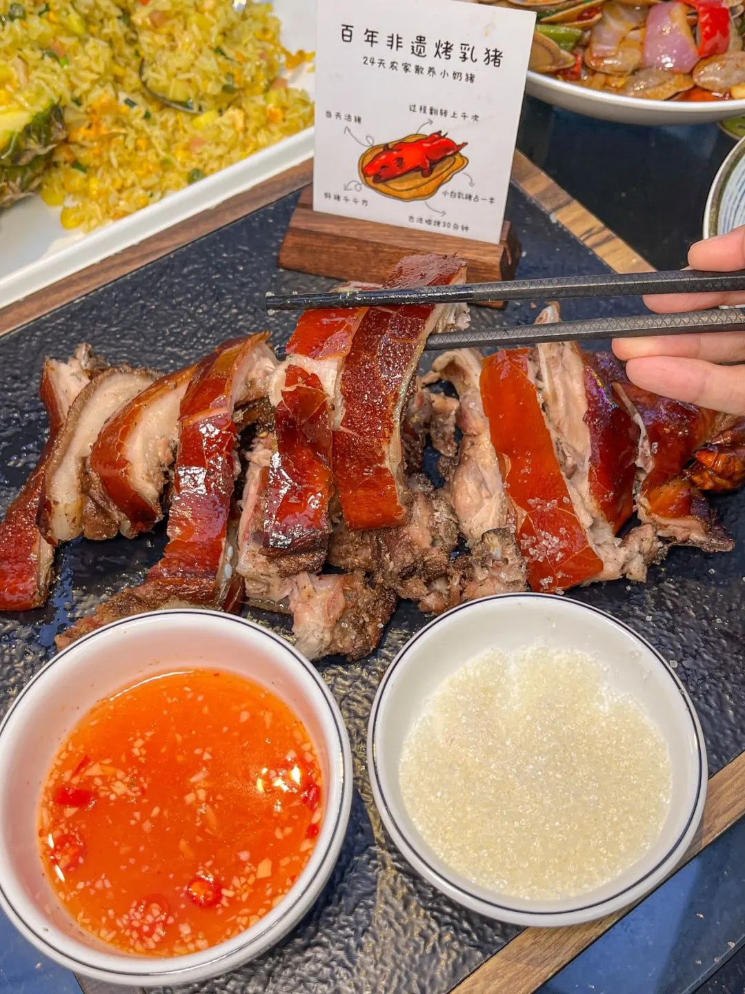 这才是被低估的海南美食!吃一次就会有无数次吧?要不是本地人带路基本找不到!店里大部分都是老客,吃的都是老味道🥰 烤乳猪一定要趁热吃!现烤现砍,皮脆肉香,蘸上白糖,脆感又提升了,一点都不腻😝 除了烤乳猪还有海鲜小炒!都是海鲜池里现捞现做,每一道都不错,可以试试 油焖大虾🍤肉质鲜弹,咸口的好吃 香辣芒果螺每一颗肉质饱满吃起来香辣爽口 鲍汁手工豆腐咬下去很嫩,很适合下饭 很接地气的一家老店!服务和味道都挺不错的,值得N刷的程度…