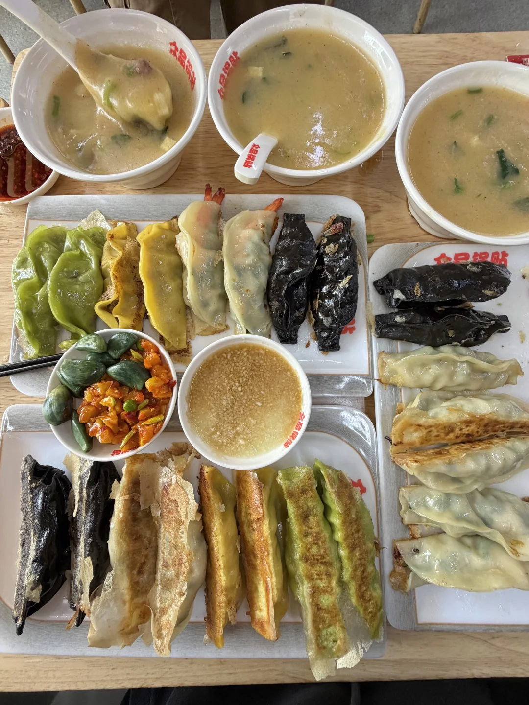 在青岛最严重的时候…一个星期吃了六次!!现包现做的锅贴🥹给我吃服了! 真的好吃!!半夜翻相册馋哭的水平… 饭张力高到爆炸啊啊啊啊!!! 不愧是本地人经常来吃的小店! 来青岛就为了这一口… 锅贴皮薄馅大,好好吃啊!! 请直接安排全家福大虾、墨鱼、牛肉、 都好好吃!明档厨房阿姨现包吃的很放心