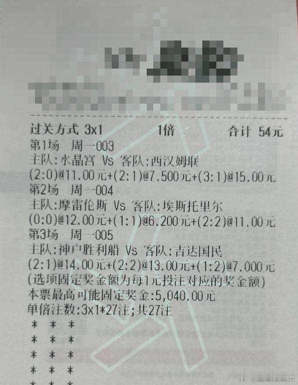 周期:003 英超球队:水晶宫vs西汉姆联方向:胜比分:2-0 2-1 3-1