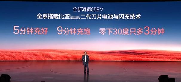 全新海狮05全系搭载比亚迪第二代刀片电池与闪充技术,主打5分钟充好 9分钟充饱 零下30度只多3分钟