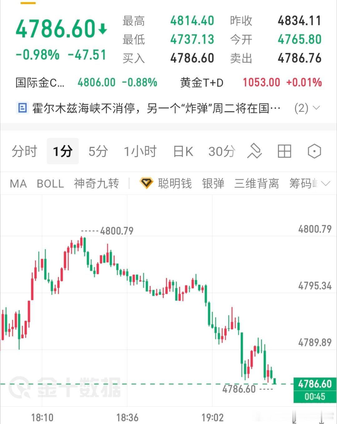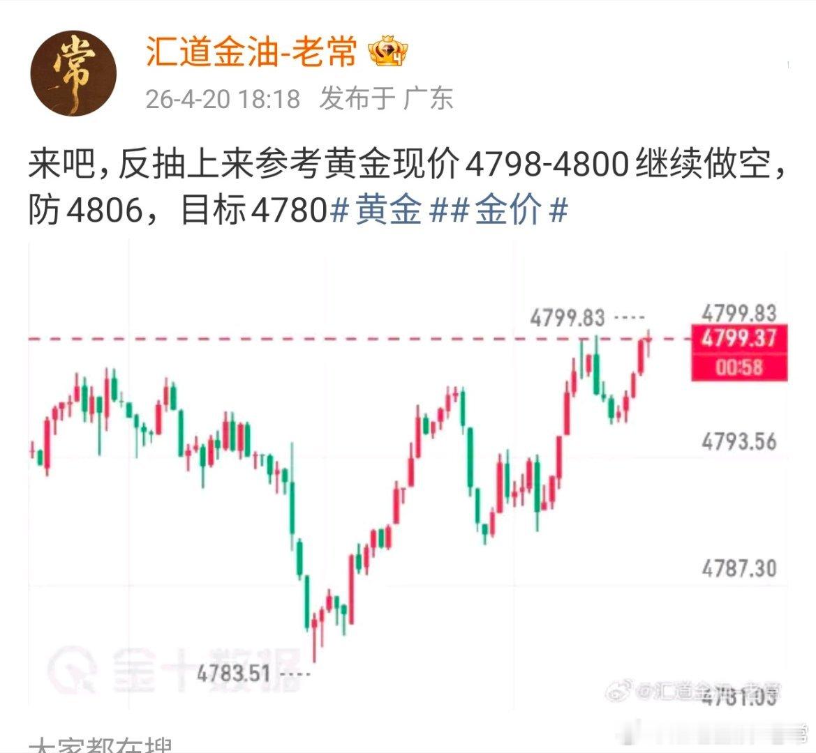 实时布局4798-4800上车这波可谓精准抄顶了,场外跟单的朋友们多多注意根据自身资金合理安排护利工作,稳健的朋友们可先行止盈离场了,不必等老常通知黄金金价现货黄金