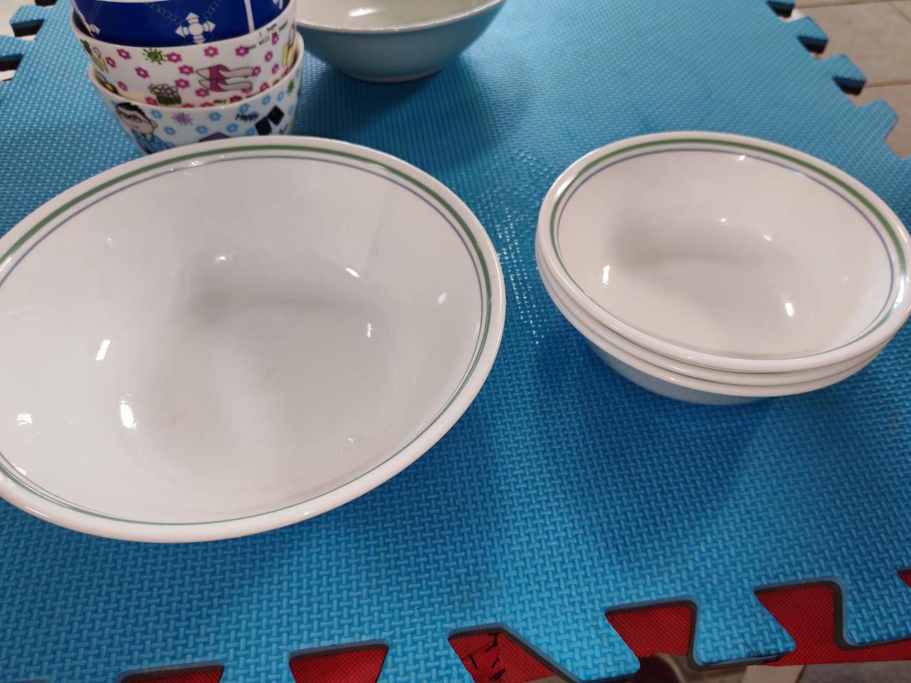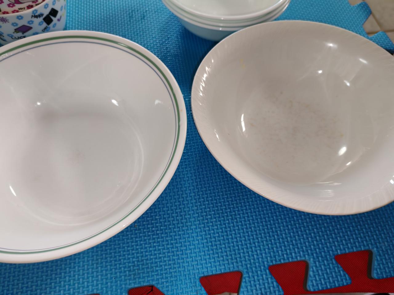 在我家,今天又发生了一件奇葩的事:我教老伴认识“饭碗”。 有的好友可能要问:“三先生怎么了,不认识饭碗了”! 我每天做饭都由老伴儿帮我打下手,但是吃饭拿碗却成了麻烦事儿了! 老伴耳背,和老伴哑语打手势,我比划他猜,老伴看不懂! 尤其是有的词儿,我还真不会打手势!比如“中碗”。 让老伴拿大碗,我可以用手比划差不多一边大的圆,老伴就知道拿大碗。 我们家“中号碗”,我不知道怎么比划,老伴总拿错。 拿小碗的时候,我比划“小圆”,老伴又拿出来个“中小碗”来。 每当吃饭的时候,就拿这个碗,我就得比划半天,最后还得我去拿! 我们常用的就是“中小碗”。就这个中小碗,我就不会比划了! 有时候我对着老伴耳朵喊:“半大碗”老伴儿更是蒙圈了! 这在别人家,吃饭取个碗,简直是小事一桩,不就拿个碗吗!在我们家就成了一个闹心事了! 今天,我们来个一劳永逸。我把碗都拿出来,我教老伴儿认识“饭碗”!并给大,中,小碗各取了名。 大碗,就是我们家最常用的,我一比划大圆,这就是大碗(最后一图) 然后我比划个“小圆”,那就是“小碗”就是那摞三个小花碗。(四图中上) 这个“小中碗”我就不会比划了!今天和老伴儿统一共识了,就叫“二碗”。 以后让老伴拿碗,我只要伸出两个指头,表示“二”老伴就知道了!(三图,右上角) 给碗起了名之后,又和老伴演练了一遍。 更主要是,这会儿,我伸出两个手指,老伴就知道:拿那个中碗了! 哈哈!这种奇葩事只有在我家才能发生!一个行动不便,一个耳背!在别人家是不可能发生的!