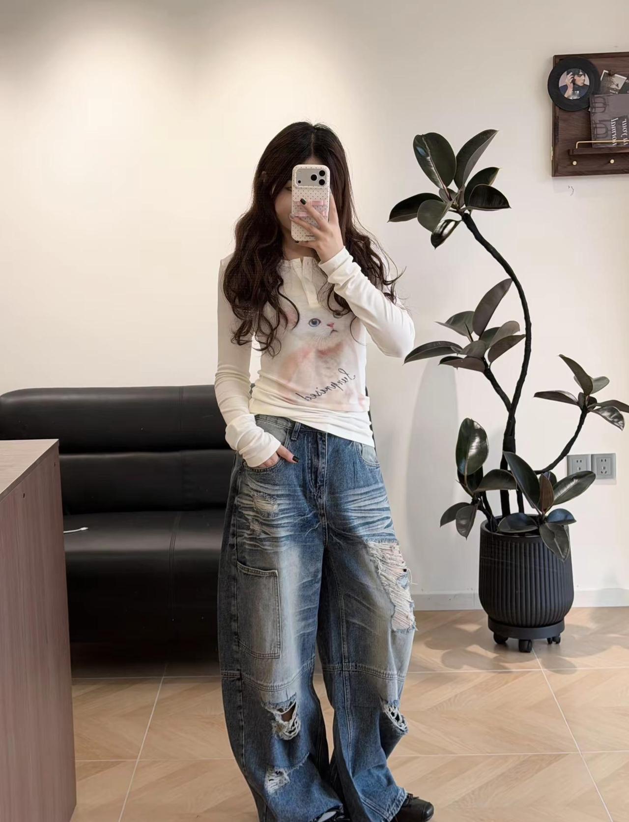 简约而不简单,确实是女神范儿的真谛,一条灰白牛仔裤搭配白色内T!时尚女性气质气