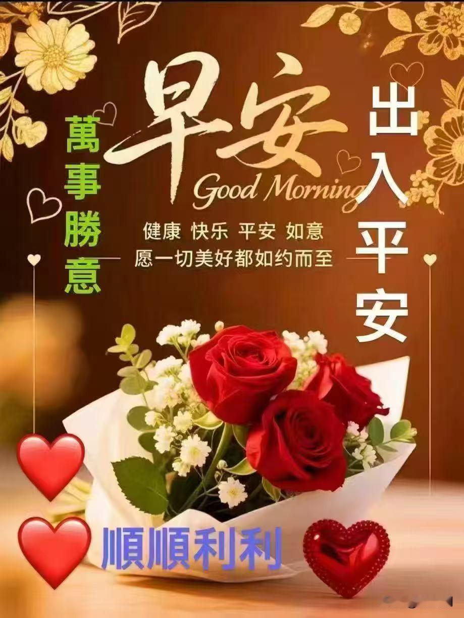 [心]早安心语[心] 晨光破晓映轩窗, 宿梦轻抛意气昂。 宿雾渐消山色朗, 朝霞初染柳丝长。 心怀壮志迎佳日, 目注前程向远乡。 且把闲愁皆放下, 早安一语韵流芳。 晨光破雾透帘栊, 宿梦初醒意未穷。 宿雾渐消山影秀, 朝霞初染水波红。 心怀善念迎新岁, 目注祥光向远空。 早安声声传厚意, 愿君今日乐无穷。 [福][玫瑰][心][祈祷]