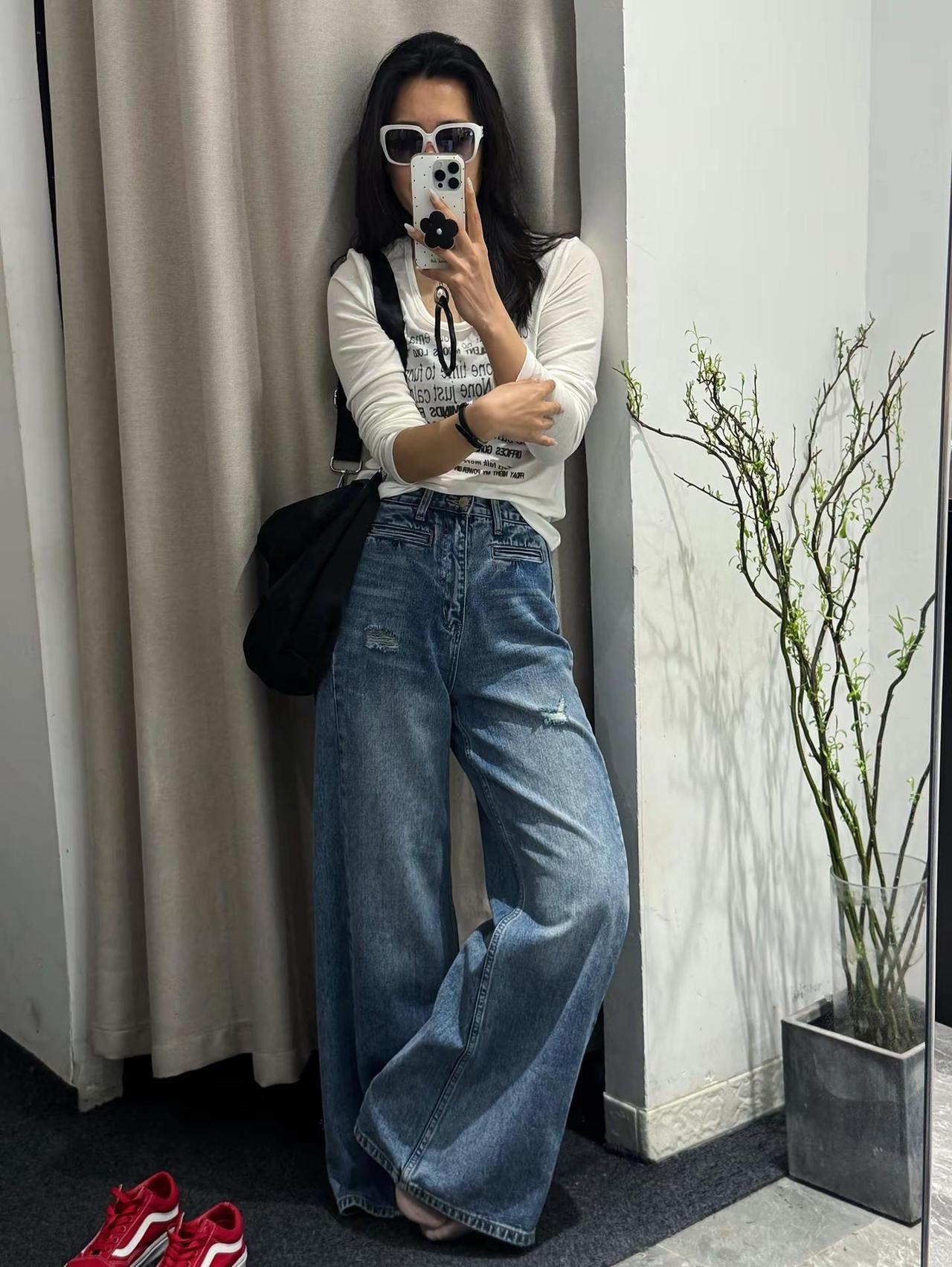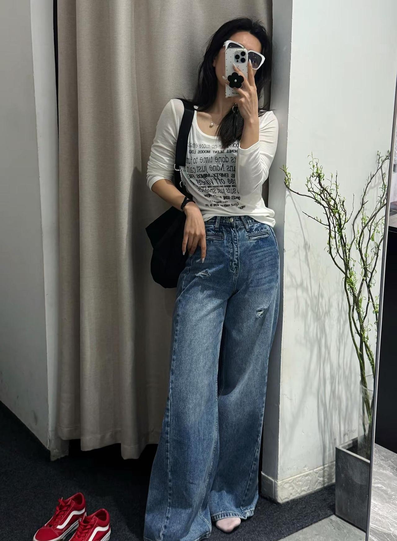 简约而不简单,确实是女神范儿的真谛,一条灰白牛仔裤搭配白色内T!时尚女性气质气