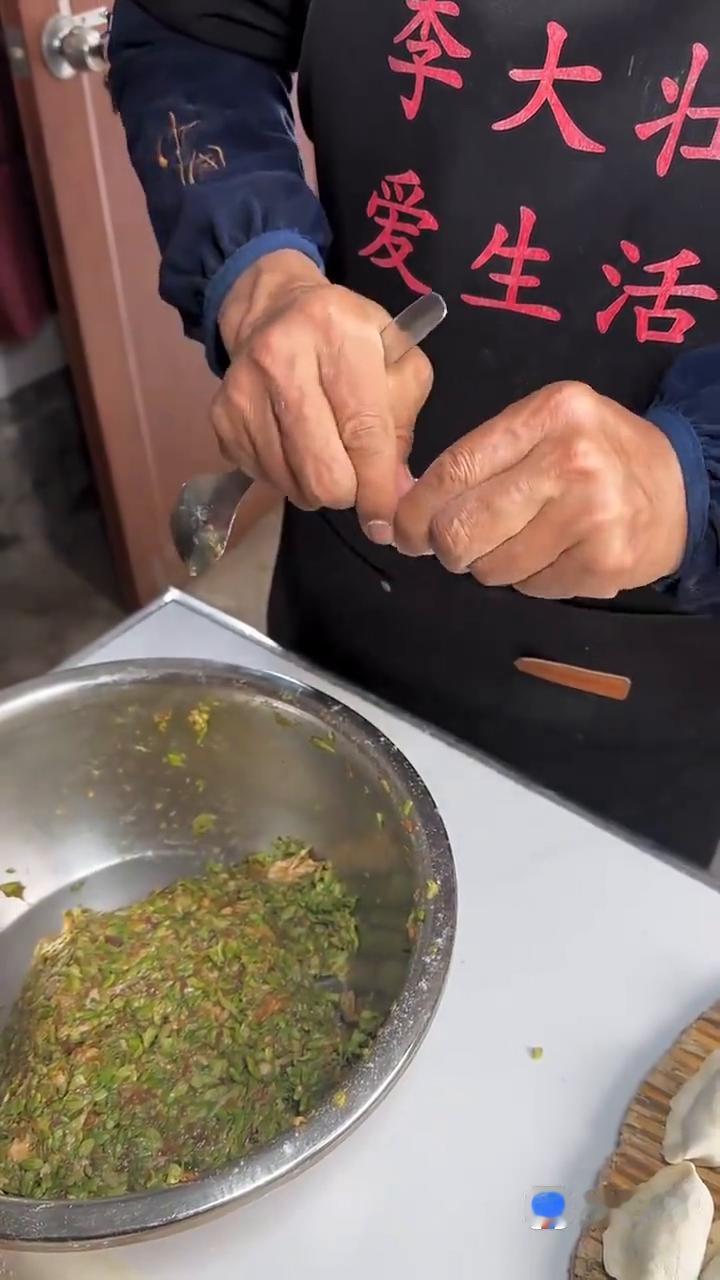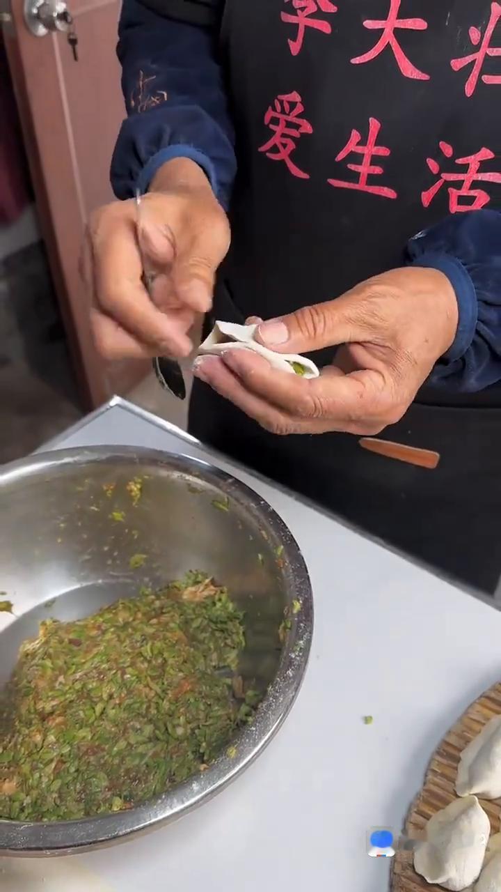 槐花饺子。 槐花可长出来了,刚结骨朵正嫩的时候,那么多。今天中午是包饺子还是包包子?包子、饺子都好吃,先吃个饺子,过两天再吃包子。要吃饺子了,我就先去准备小料跟肉馅。还是我和面擀皮,你爸包。 ·朋友们,槐花饺子还在,趁肉馅先泡点葱姜,打点水,打点肉馅,倒点温水泡出料味。 ·肉馅打打,打好的肉馅先调味,来点盐、味精、五香粉、胡椒粉、花椒面、一点点老抽,先抓拌入味,再少量多次浇上葱姜大料水,顺着一个方向搅打上劲,把葱姜大料水吃透,肉馅拌到这种状态就可以了。 ·接下来处理槐花,大锅水开把淘净的槐花焯个水,有效去除一下它的生气,焯个30秒捞出来,迅速过凉。 ·开始和面,温水和面,饺子面和里稍微软一点,再给槐花搦点水,加入肉馅,面和好盖着醒会,最后再淋上点香油,拌匀。槐花猪肉馅都拌好了。 ·开始揉面擀皮,搓成长条,切成剂子,擀成饺子皮。槐花一年就吃三五天,包饺子、包包子、再炒鸡蛋也都过去了。 ·添水烧锅,吃饺子还少不了酸辣汤,碗里放葱花、香菜、生抽调味,醋,自己熬辣椒油。 ·大锅开下饺子,再来一锅排,推一下,盖盖儿滚起。锅开先浇酸辣汤儿,饺子熟了出锅。 这一盘带劲不带劲?槐花饺子吃着绿色又健康。朋友们尝尝今天中午槐花饺子好吃不好吃?先浇点酸辣汤,满口春天的味道。槐花还得配肉馅,吃着软香。槐花饺子吃了,等两天再拘点包个槐花包子吃。槐花一年也就这几天,有条件去做点,包成饺子、包上包子、炒个槐花炒鸡蛋,带劲的很。