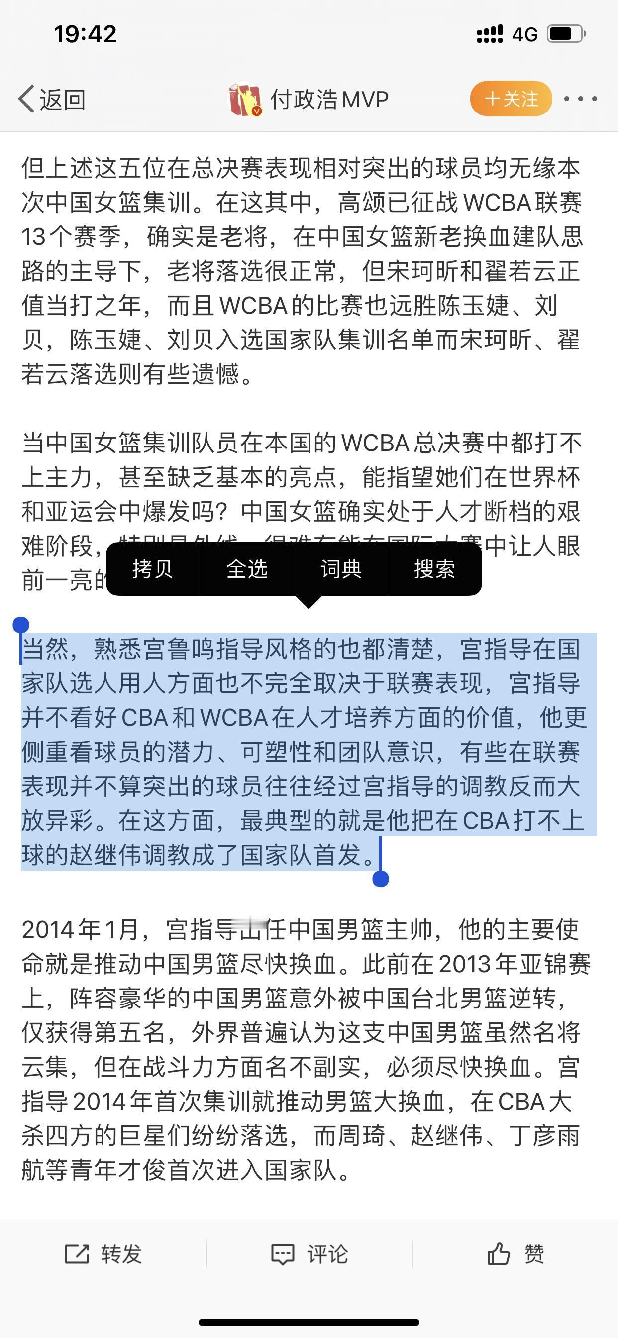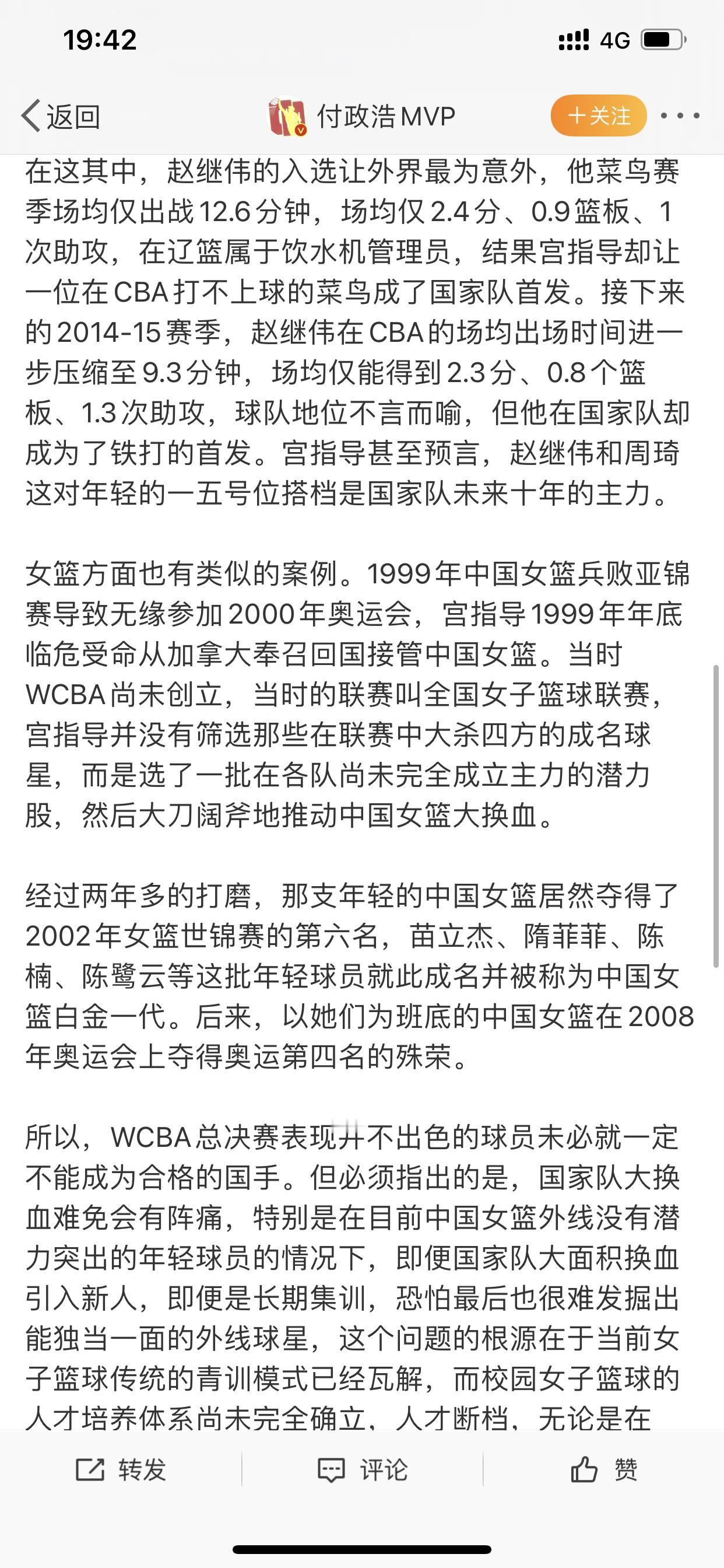 宫鲁鸣当主帅是为国家队挖掘和培养球员的 这话不是我说的,此调论是知名篮球媒体人付政浩专门发文所言 他说熟悉宫鲁鸣的都知道,每次担任中国男女篮主教练时,所选择的国家队球员并不是只着眼于男女篮联赛的表现 付政浩还说宫鲁鸣并不看好CBA和WCBA在人才培养方面的价值 因为宫鲁鸣本人更注重球员的潜力、可塑性和团队意识,所以宫鲁鸣喜欢选择一些在联赛表现并不突出的球员,而宫鲁鸣则是希望通过自己的调教在国家队参与的大赛上大放异彩。 对此,他还专门举例子说明,说男篮的赵继伟,女篮的苗立杰、隋菲菲、陈楠等已经通过宫鲁鸣的挖掘和培养,用实战证明了宫鲁鸣的能力 所以,宫鲁鸣现在再次接手中国女篮,目的是为了挖掘和培养女篮国字号选手