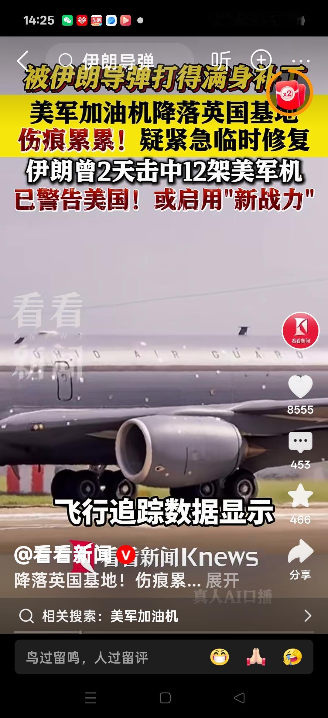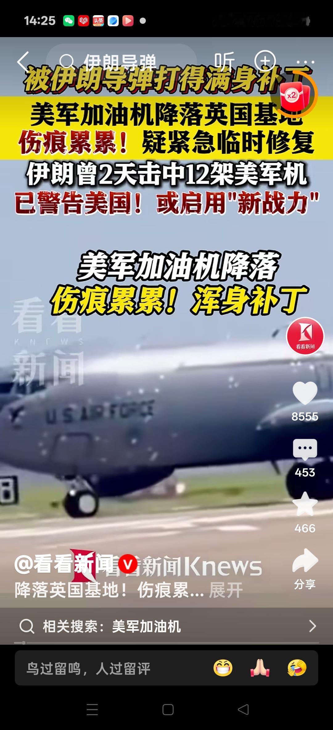 被伊朗导弹打的满机身都是补丁,美国加油机降落英国基地,伤痕累累!疑紧急临时修复!伊朗曾两天击中12架美军机。网友说:只能证明伊朗的导弹不行,打成这样也没坠毁,打脸的不是飞机,是导弹!有的人说:可把那些反人类的国家高兴坏了!应该是飞得太低,被地面上的轻武器打的,高射击枪打的地对空导弹不会是这么小的伤害。有的人说:这飞机质量这么好!这飞机厉害,导弹只能伤它的皮毛。有的人说:加油机中弹了,没爆炸还能飞到英国降落,这技术已经非常好了。有的人说:美国飞机质量也太好了,还是美系结实啊!大家说是这样的吗?