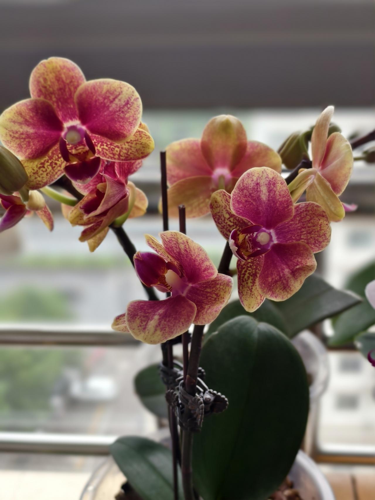 退休人每天起来第一件事就是阳台上赏花,外面公园的花再美带不回家,而自己家里的花随时随地欣赏,心旷不已。 作为北方人,我养蝴蝶兰的诀窍之一就是买北方基地的苗多些,因为地域相近,更容易服盆。 买过徐州,潍坊,陕西的苗子,也买过少量广东的苗子。 而且我喜欢中小花型的,不太喜欢大花型(太过恣肆)。中小花型的蝴蝶兰既有婉约之美,又跳脱俗艳气息,令人百看不厌。 如果你也喜欢蝴蝶兰,不妨评论区交流一下。