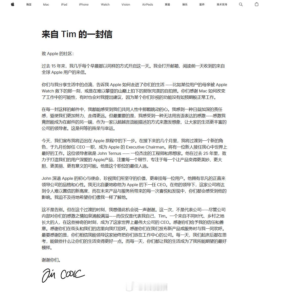 突发消息!库克不再担任苹果CEO,由约翰·特纳斯接任。大家觉得这是好事还是坏事?库克不再担任苹果CEO