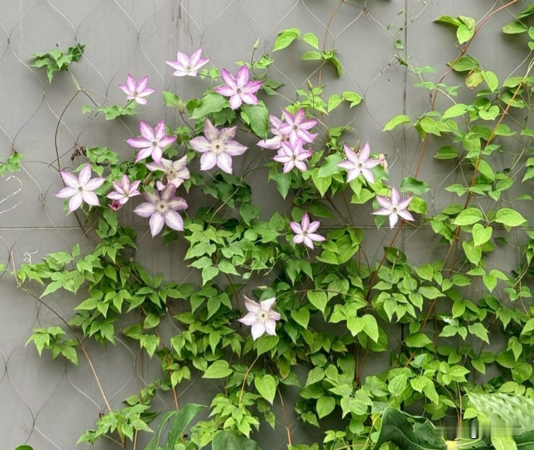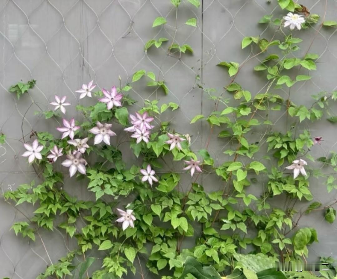 出门散步竟邂逅了一份小惊喜! 墙面上的铁线莲肆意攀爬, 热闹非凡。 粉白渐变的花瓣宛如繁星, 点缀在绿藤之上, 微风拂过, 轻轻摇曳。 细碎的温柔在枝叶间弥漫开来, 连墙面也仿佛柔和了几分。 原来,春天的浪漫就隐匿在这不起眼的角落。