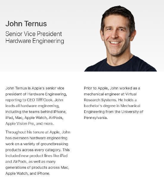 苹果新任CEO特努斯是谁作为苹果25年资深元老,特努斯是机械工程出身,全程参与历代iPad研发,一手主导iPhone、Mac、AirPods、Apple Watch、Vision Pro等全系核心产品硬件工程,是外界公认的头号接班人。他比库克年轻15岁,深耕硬件领域,或将带领苹果聚焦硬件创新。库克回顾15年CEO生涯回望库克时代,战绩十分亮眼:公司市值从3500亿美元暴涨至超4万亿美元,营收翻近四倍,催生AirPods、Apple Watch全新品类,壮大苹果服务生态,全球布局全面铺开。全新掌舵人就位,苹果接下来的发展值得期待!