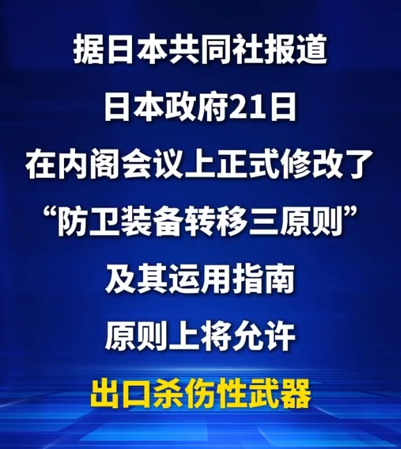 日本正式允许出口杀伤性武器 背后的图谋一目了然:一方面是为挽救陷入困境的军工产业——因仅供应自卫队,日本国产武器单价畸高,近20年已有超100家企业退出防务领域,打开出口市场是其“救命稻草”;另一方面是绑定美国主导的同盟体系,通过军售拉拢盟友,推进地缘布局。