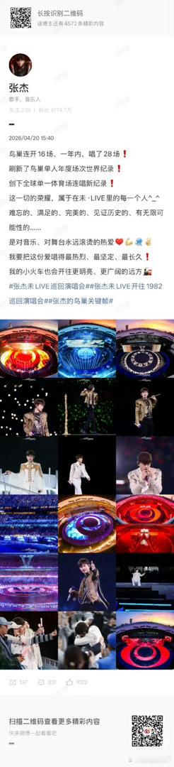 张杰16场鸟巢演唱会收官发文张杰鸟巢演唱会连开16场打破世界纪录!从开幕到收官都