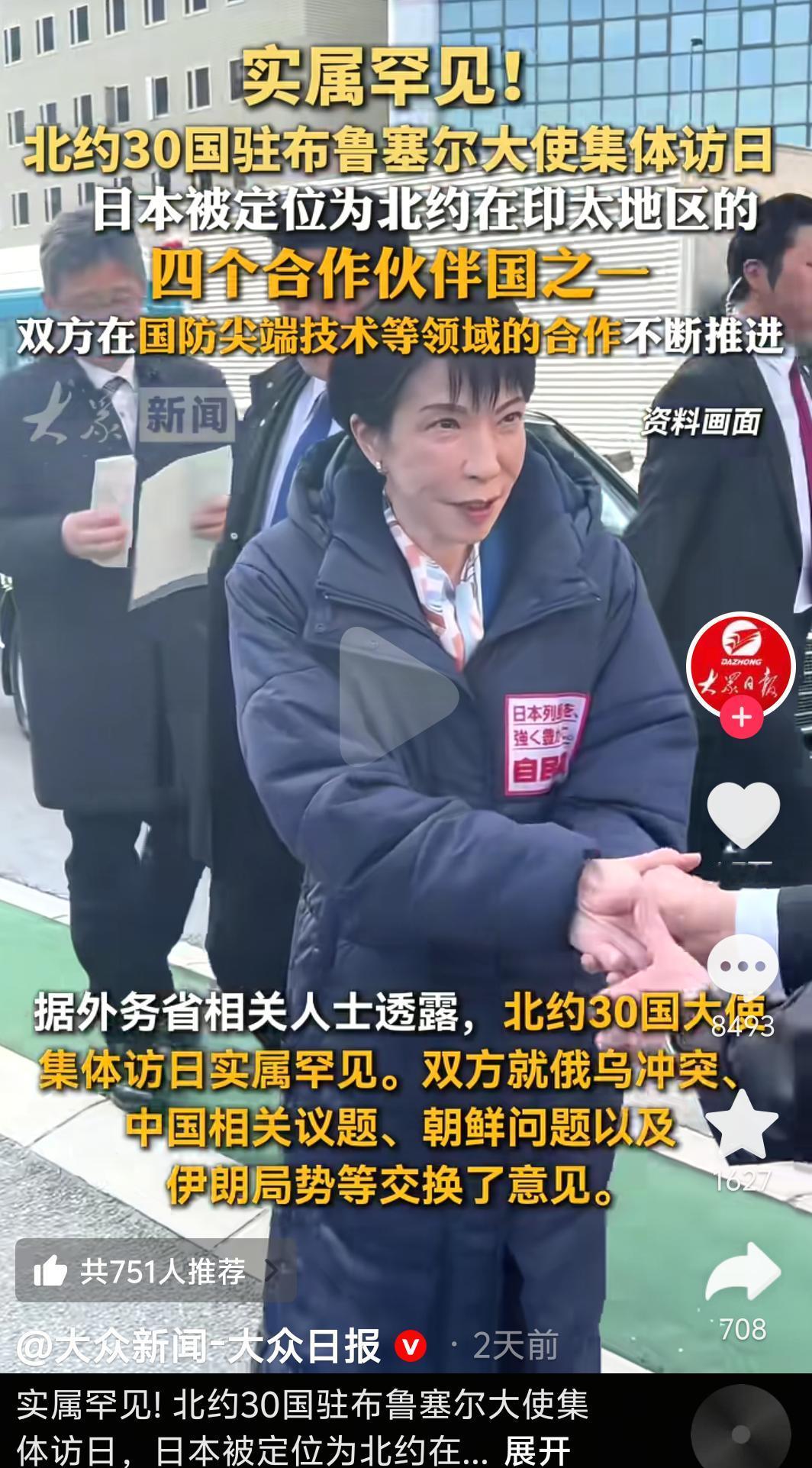 北约30国访日,亚太这盘棋要变天? 敏感时刻,30个北约国家组团窜访日本,跨大西洋军事集团公然染指亚太,意图很明显。 要知道,北约本来是欧洲的军事组织,现在跑到亚太搞联合,本质上是在搅动地区局势。这步棋看似针对中国,实则是在破坏亚太的和平稳定。 国际社会谁都想安安稳稳发展,搞拉帮结派那一套,最终只会搬起石头砸自己的脚。你觉得北约这波操作,会让亚太局势更紧张吗?