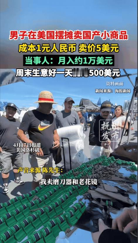 “太有头脑了!”河南一男子在国内打工赚不到钱,做生意也赚不到钱,于是他灵机一动,想出了一个赚大钱的好方法,就是到美国摆摊卖国产小商品,成本1元人民币的东西卖价5美元,都抢着买,周末生意好一天能赚500美元,最差的时候一天也能赚300美元,月入约1万美元! 33岁的陈先生,老家在河南周口的农村,如今在洛杉矶的街头摆着一个小摊子,专卖从国内运过去的小商品,凭着这门小生意,在异国他乡稳稳扎了根。 他没读过多少书,初中毕业就出来打拼了,既没有拿得出手的专业技能,也没有什么人脉能帮衬,在国内的时候,日子过得一直紧巴巴的。 陈先生前几年辗转了大半个中国,在南方一家电子厂打工,每天工作十几个小时,累得浑身酸痛,一个月下来到手也就六千多块钱。 陈先生是个不肯安于现状的人,他不想一辈子耗在流水线上,耗掉自己的力气,却赚不到什么钱。于是他辞了工,回了老家,想试着自己做点小生意。 他在乡镇的街边摆过摊,卖过新鲜的蔬菜瓜果,后来又凑钱开了一家小小的小吃店,卖些平价的家常小吃。 可乡镇的消费能力就那么点,做同类生意的人又多,再加上房租和食材价格一个劲地涨,几番折腾下来,不仅没赚到钱,还把之前打工攒的一点积蓄都亏光了。 生意失败后,陈先生愁得整夜睡不着,偶然间听老乡说起,美国的日常小物件卖得特别贵,而国内的小商品又便宜又好用,他心里突然冒出一个念头,去美国摆摊卖国货。 这个想法一提出来,身边的人都劝他,说他太冲动,异国他乡语言不通,又没人照应,万一亏了,连退路都没有。 可陈先生铁了心,他知道,这可能是他改变命运的唯一机会。 为了能顺利出去,他提前做了半年的准备,每天抱着手机看相关的视频,了解洛杉矶的集市情况、当地人的消费习惯,还专门找了几个已经在那边摆摊的老乡,一遍遍打听注意事项,把能想到的问题都问了个遍。 最让他头疼的是英语,之前没怎么接触过,连简单的问候都不会说,可他知道,要跟当地人做生意,英语是绕不开的坎。 于是他就自学,专门记那些摆摊能用得上的词汇,比如商品名称、价格、简单的使用说明,每天反复念、反复练,慢慢的,也能应对基本的交流了。 除此之外,他还自己一点点办理出国手续,还有美国摆摊需要的许可证,按规定缴纳税费,对接跨境物流,每一步都走得特别不容易,常常忙到深夜,也没少受委屈。 到了洛杉矶之后,陈先生把摊位选在了社区集市和周末的露天市集,他发现,这些地方的人流量特别稳定,来的大多是当地的中老年大爷大妈,他们就喜欢这种便宜又实用的小物件。 他的摊位很简单,就一张折叠桌,一个简易的收纳箱,把各类小商品整齐地摆好,不搞那些花里胡哨的装饰,省下的钱都用在货源上。 摆摊的时候,他从不偷懒,不管风吹日晒,每天都准时出摊,遇到大爷大妈咨询,他就用不太流利的英语,再加上手势,一点点讲解商品的用法,还会亲手演示,让大家看得明明白白。 他卖的这些国货,在国内也就1块钱,到了美国,他统一卖5美元,比起当地商超十几美元的价格,便宜了一大半,所以一摆出来就很受欢迎。 刚开始的时候,他还担心卖不动,没想到第一天出摊,就被大爷大妈围了起来,大家你挑我选,没多久就卖出去不少,他悬着的心终于放了下来。 他每天凌晨就得起床,去进货,整理货物,然后赶去市集占位置,一站就是一整天,有时候忙得连吃饭的时间都没有,嗓子喊哑、腿站肿都是常有的事。 现在,他平日里一天能赚300美元左右,到了周末,市集人多,一天能赚500美元,一个月下来,纯收益差不多有1万美元,比在国内打工强太多了。 有人说他这是钻空子,其实不然,他所有的手续都办得妥妥当当,按时交税,合法经营,只不过是抓住了两地的信息差,靠自己的辛苦和踏实,赚一份安稳钱。 陈先生没有高学历,没有硬背景,却凭着自己的努力,找稳定的货源,自学英语,锁定中老年客户,在异国他乡摆地摊,闯出了属于自己的营生。 这份营生虽然平凡,却让他在国外站稳了脚跟,也让家里的日子慢慢好起来,这份靠双手打拼的底气,比什么都珍贵。