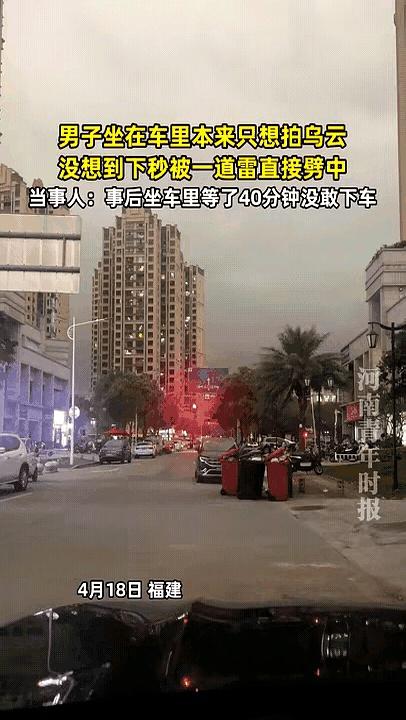 开车看到天阴打雷,你还敢停车拿手机拍? 福建这哥们儿就干了这事儿,结果咔嚓一道闪电直接劈他车顶上了,巨响加震动,车里瞬间一股焦糊味,吓得他脑子空白,愣在车里40分钟没敢动弹! 说白了就是好奇心害死猫,你举着手机朝天拍,在空旷处就跟举个引雷针似的,危险系数直线上升。 不过这次能没事儿,全靠他的车成了个“避雷舱”,电流顺着金属外壳走了,这原理就跟法拉第笼差不多。 所以说啊,雷电天气别逞能,你以为躲在车里就绝对安全? 大自然的威力可不是开玩笑,敬畏点儿没错。 看完这个,下次雷雨天你还敢掏手机拍视频吗?