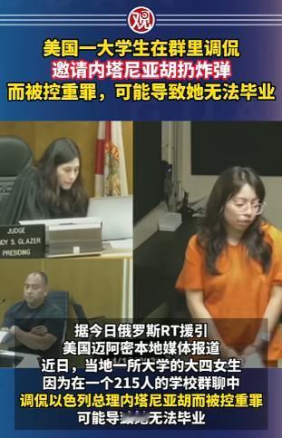 美国女大学生在两百多人的群里,随口说想让内塔尼亚胡扔炸弹,结果直接被按重罪抓了!就一句玩笑,可能要蹲15年牢,读了四年的大学眼看毕不了业!在咱大多数人看来,这不就是句气话,网上这种“口嗨”还少?每天没有一万句也得有八千句,萨尔达尼亚自己估计也没把这当回事儿。 群里那两百多号人里,有双眼睛不声不响地盯着屏幕,这人没跟她吵,也没跟她辩论,反手就是一个截图然后直接报了警。 好家伙这一下可捅了马蜂窝了,警察找上门的时候,萨尔达尼亚估计都懵,来的不是社区巡警,是正儿八经的执法人员,直接就把她给带走了,给她安的罪名,一听就让人后背发凉——“恐怖威胁”。 一句玩笑话怎么就成了“恐怖威胁”?这就得说到地方不一样,规矩也不一样,萨尔达尼亚在的路易斯安那州,对这事儿的法律规定就特别严。 它那个法律说构成“恐怖威胁”,不一定非要你真去造个炸弹或者策划个啥行动,只要你说的话能让人合理地认为,你是在煽动暴力或者想让一大帮人害怕这就够了。 萨尔达尼亚这句话对象是外国领导人,内容提到了炸弹,发布的地方还是个因为这事儿闹得沸沸扬扬的学生群。 在司法系统眼里,这几个要素一凑性质就变了,这不再是你个人的情绪发泄,而是可能危害公共安全的言论,法律条文是冰冷的,它不跟你探讨你是不是在开玩笑,它只看你的行为带来了多大的风险。 结果就是这位马上要毕业的姑娘被正式逮捕面临重罪指控,一旦罪名坐实最高能判十五年。 十五年大伙儿想想这是什么概念?一个二十三岁的年轻人,人生最黄金的十五年,可能就要在监狱里度过。 这比她从小学一年级读到大学毕业的时间还长,四年的寒窗苦读眼看就要到手的学位,全没了。 人生档案里永远地留下一个抹不掉的污点,她的人生不是被按了暂停是直接被拽离了原来的轨道冲着悬崖就去了。 对这个姑娘来说这是一场彻头彻尾的悲剧,一念之差满盘皆输,而对我们这些看客来说,这是一个响亮的警钟。 它提醒我们,在这个时代管住自己的嘴,尤其是管住自己在网上的那根手指,比什么都重要。 在你想敲下一句情绪化的评论之前,多想那么几秒钟,想想这句话发出去,最坏的结果会是什么。