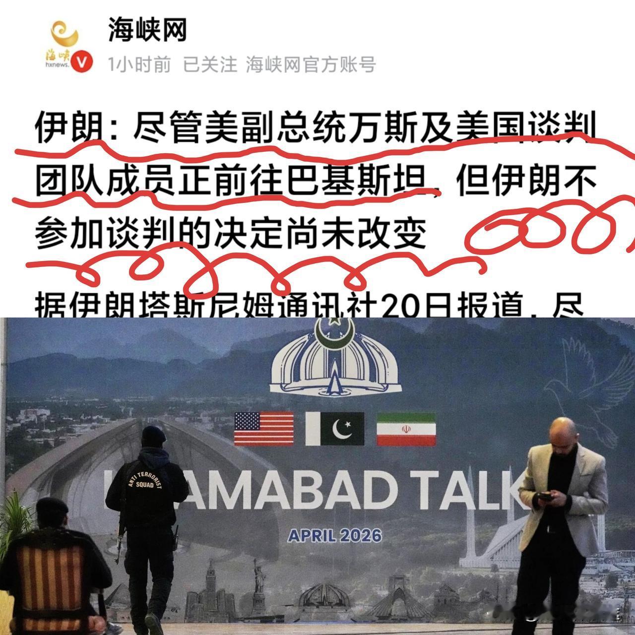 伊朗“不妥协”,美国“不松口”,谈与不谈取决于美方的态度!从美国特朗普所表现出来“喊打喊杀”的态度完全视伊朗为“战败国”,将伊朗逼上谈判桌 变成对美国的“投降桌”!伊朗绝不妥协! 如果美方的态度不改变,就算伊朗上台谈判了,也不会有什么好结果,没准双方在谈判桌上“动粗”也是很有可能的!而伊朗不可能自认为一个“输家”上谈判桌,这性质完全变了。所以伊朗革命卫队依然选择与美国打第二场战争,用战争见分晓! 同时如此仓促达成的协议 根本没有意义,也解决不了问题,不过伊朗以国有利益为重,任何不符合伊朗利益的条款,伊朗也决不会签字,其实最后也就达不成任何协议! 就如特朗普在2025年对等关税之下,与美国盟友关税谈判一样,仓促进行,最后达成贸易协议,这根本就不是谈判,而是对盟友强压对方答应,否则美国就要动手。在这种情况之下,美国盟友“怕”美国,签下不平等条约! 反之现在美伊之间也是一样的情景,美国就想强压逼伊朗低头服从美国的指令,不过伊朗可不是美国盟友那么怂,要谈就好好谈,要打奉陪到底!为此美国占不到半点便宜!特朗普比谁都急!只能“打嘴炮”的威吓伊朗,但伊朗就是不上桌,特朗普更急! 目前可以说,美国是在等伊朗谈判,这种态度反转,也证明了伊朗不是一个善茬呀,就这一局,伊朗是胜利者,美媒报道 白宫20日一整天都在等德黑兰前往巴基斯坦!从美国这些举动来看,美国真是“掉价”了,在强手面前,美国不像是想象中的“强悍”!