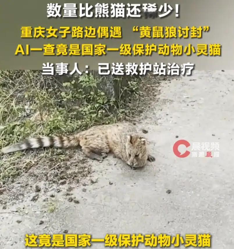 重庆石柱县,女子在路上看到一只小动物,远远望去还以为是黄鼠狼讨封,可走近一看才发现,只是外形有些类似,可她又叫不上品种,一查还真是个重量级,她碰到的是国家一级保护动物小灵猫。 当天,女子行走在郊外的小路时,周边草木繁茂、环境清幽。忽然,路边草丛中闪过一道灵动的身影,一只身形细长、毛色泛黄的小动物正谨慎张望。远远观望时,它的体态、身形和常见的黄鼠狼高度相似,结合民间黄鼠狼讨封的趣味传说,女子瞬间心生好奇,忍不住慢慢靠近观察。 待走近后,女子发现这只动物和黄鼠狼有着明显区别。它的体型更为圆润修长,身上分布着独特的斑纹,尾巴修长且带有环形纹路,模样灵动又别致。女子见过不少山野小动物,却从未见过这一品种,一时间完全叫不出它的名字。 出于好奇,女子拍下照片进行查询,查询结果让她倍感意外。这只酷似黄鼠狼的小动物,正是国家一级重点保护野生动物小灵猫,也被称作笔猫、七节狸,是实打实的珍稀保护动物,属于生态环境优良的标志性物种,野外出镜率极低,十分罕见。 女子已将小灵猫送救护站治疗,小灵猫情况并不严重,把伤养好就能放回大自然。