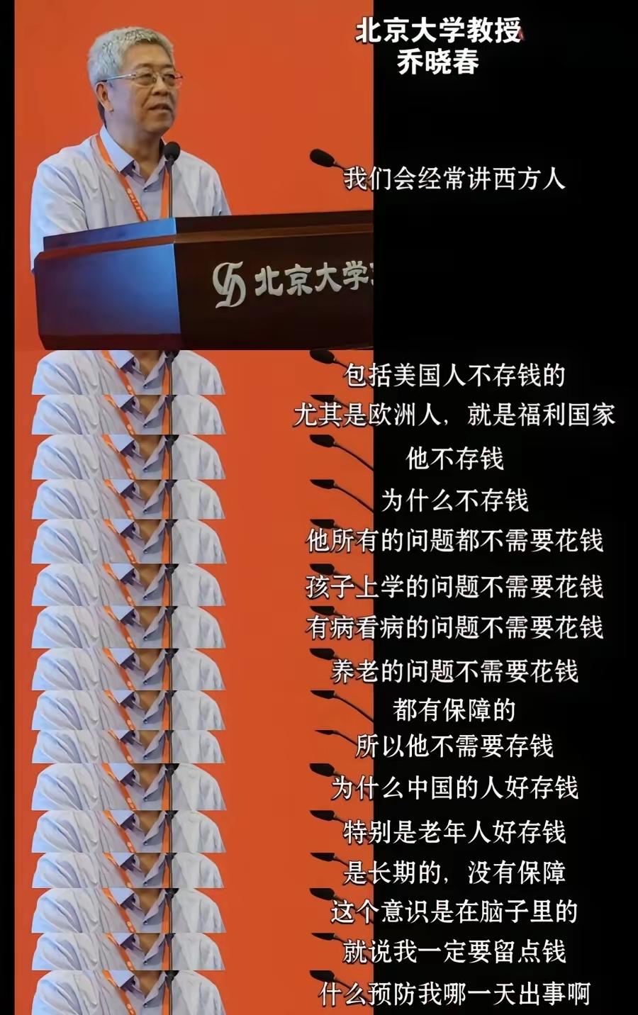 北大教授乔晓春:西方人不存钱因为教育医疗养老都免费! 我实在不敢相信,北京大学的文科教授就这样的水平吗?我很想问他这些说法的数据是从哪来的,他的这些认知是如何获得的。 咱们就拿事实说话,看看西方到底是不是“全免费”。就说医疗吧,美国作为西方世界的老大,根本没有全民免费医疗这回事。普通人看病,全得靠那贵得离谱的商业保险,一旦失业断了保险,看个急诊都能让你破产。 就算在欧洲高福利国家,教育免费通常也只到公立中小学甚至大学阶段,但住宿费、书本费照样收,哪是什么都不要钱?至于养老,拿到的那点养老金也就勉强维持个温饱,想靠那个过得滋润,简直是天方夜谭。 西方人不存钱,真不是因为人家没开销,恰恰相反,是因为生活成本太高了,根本存不下来。房租、保险、税费,再加上孩子上私立学校或者大学的各种隐性支出,工资的大头早就被扣光了。 很多美国人账户里连400美元的应急钱都拿不出来,这能叫“因为有保障才不存钱”吗?这分明是“想存也存不住”的无奈。 乔教授把这种“月光”甚至负债累累的生存状态,美化成了“高福利下的从容”,这不仅是脱离实际,简直是对基本经济学常识的无知。 这种言论最让人担心的地方在于,它用一种虚构的“西方极乐世界”来片面对比咱们现实中的问题。 咱们老百姓确实爱存钱,那是因为我们有着“未雨绸缪”的忧患意识,是想手里有粮、心中不慌,这恰恰是中国家庭坚韧和智慧的表现,绝不是什么“保障不足”的悲哀。 拿着国内的短板去碰瓷人家的神话,还以此否定咱们自身的努力,这种跪着看人的逻辑,才是真正值得警惕的东西。各位读者你们怎么看?欢迎在评论区讨论。