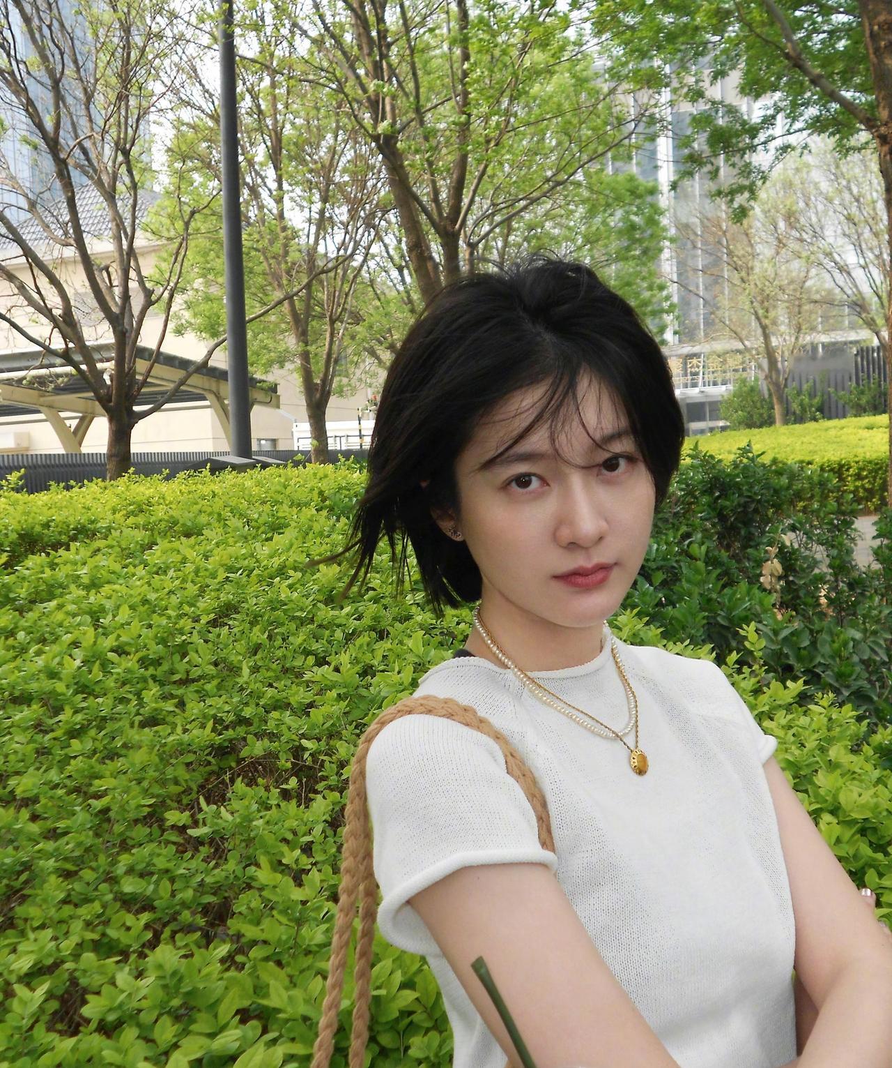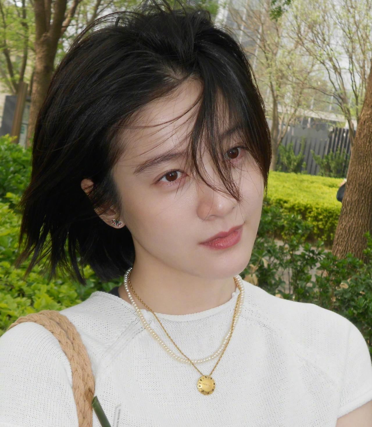 白衫与短发在阳光里轻晃,颈间的珍珠项链闪着细碎的光,把温柔和松弛都揉进了这个刚刚好的午后。