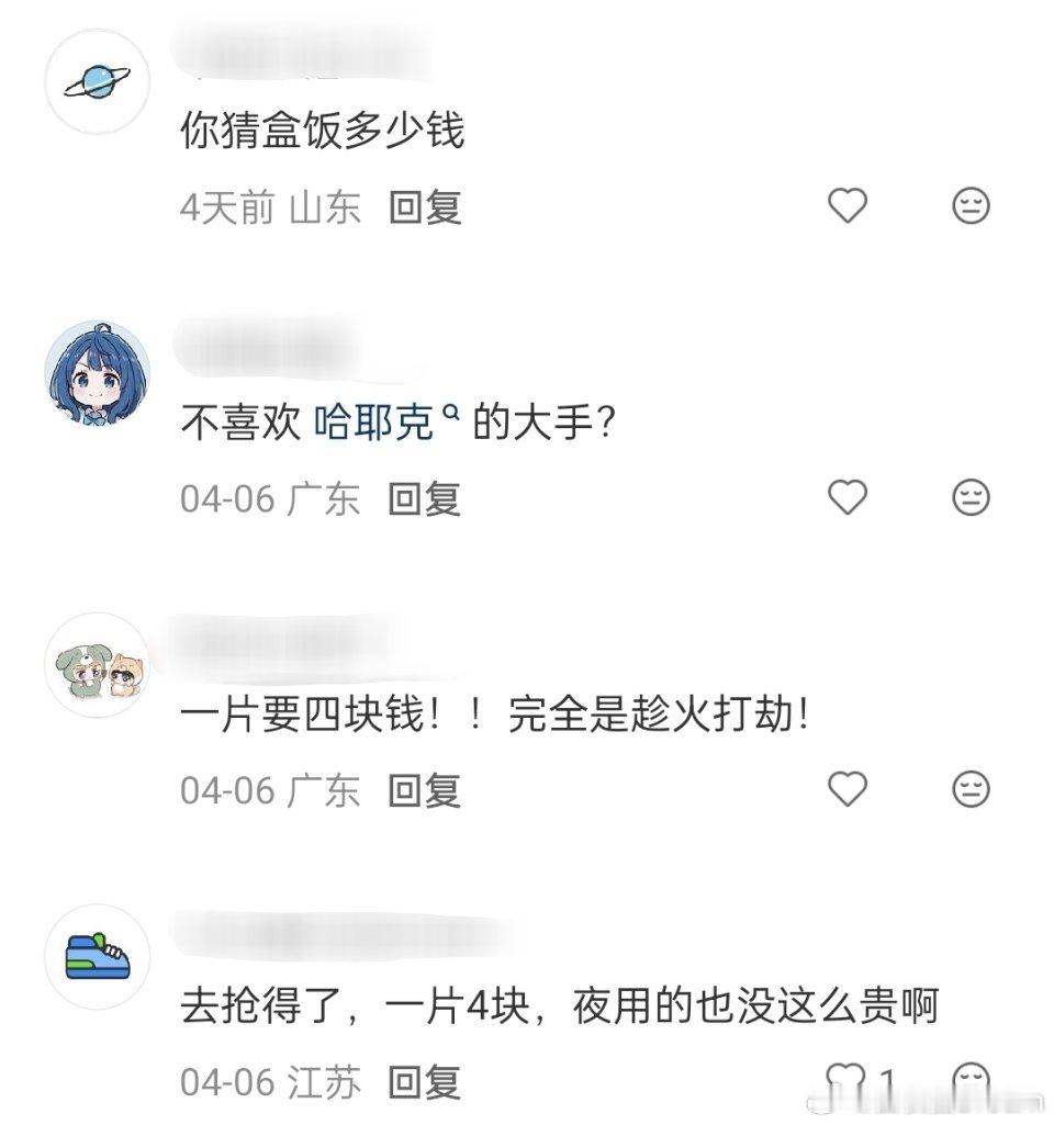 违规名称10086 2 2026-04-21 17:02 不卖要喷,贵了也要喷,干脆坐高铁送你套房子最好了。前面在讨论高铁上要不要卖卫生巾的时候我就说了,铁路运输上卖卫生巾早就有了,然后十趟路线卖三包。