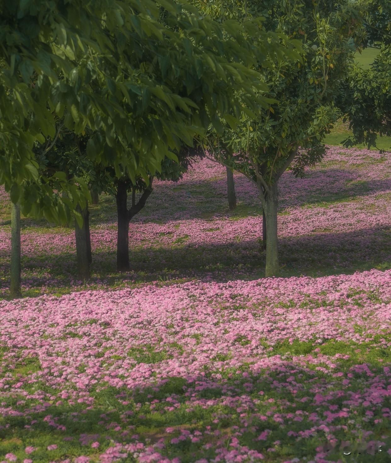 爬山的路上被这片粉色花海吸引了,阳光透过树叶洒下来,斑驳的光影落在花丛里,像给粉色地毯镶了金边,风一吹,小花们轻轻摇晃,仿佛在跟我打招呼。树干笔直站成排,像守护花海的卫士。远处山影朦胧,近处花团锦簇,随便一拍都是壁纸级美景!春天真懂浪漫,把温柔全铺在这片坡地上啦!分享你随手拍的花 春天的美丽花海