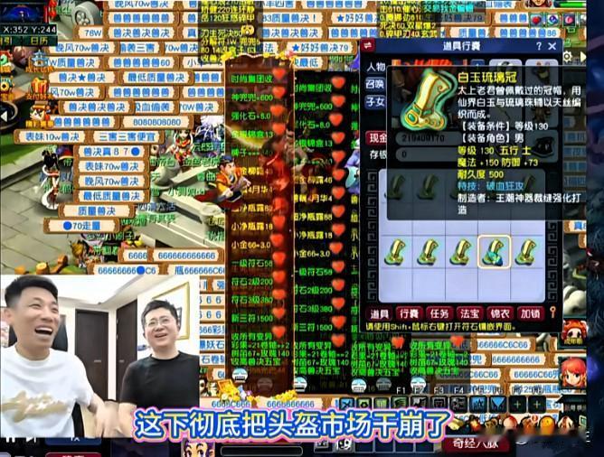 老王跟宝哥说齐天服务器头盔部位在140级里价格最低 宝哥当场直呼潮了 还吐槽自己从没出过血头 觉得小特技太多 没想到当晚鉴定装备时 宝哥接连爆出三个破血狂攻头盔 直接把头盔市场彻底干崩了 物价一路走低 直播间观众纷纷调侃 这下头盔彻底不值钱了