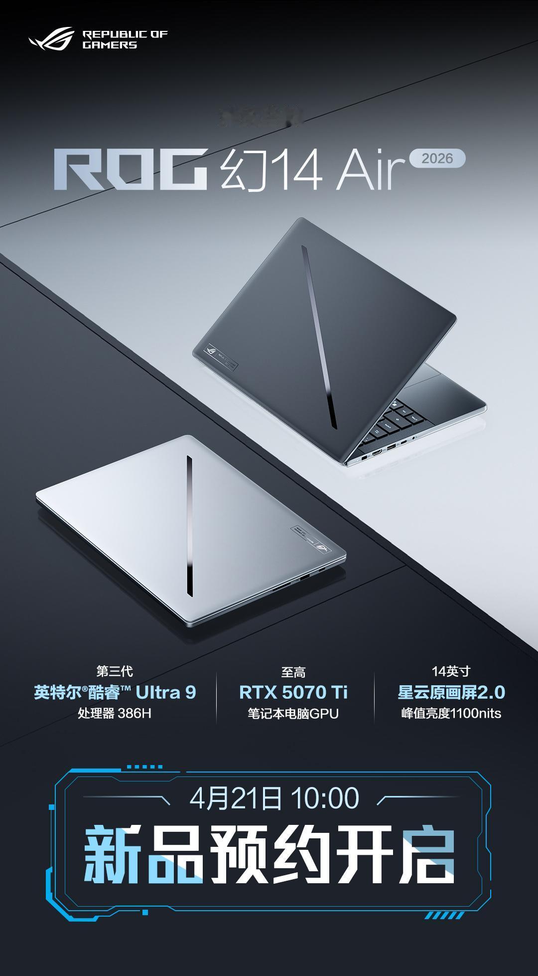 16英寸双大屏旗舰全能本 ——ROG幻16双屏,正式登场。 至高搭载RTX 5090与Ultra 9 386H 处理器。五大形态自由切换,转轴开合之间,从创作台、演示屏到监看中枢,角色随心定义,一机多能,定义“背包里的移动工作站”。 ROG 幻14/16 Air 2026专业性能轻薄本同步登场,极致轻薄,性能不妥协。 即刻预约,锁定你的移动生产力旗舰。