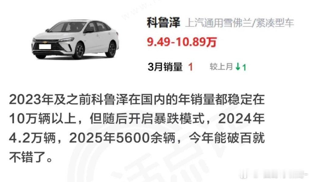 谁能想到,曾经的美系性价比神车科鲁泽,如今月销只有1台