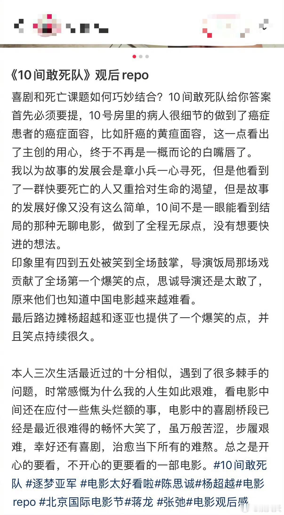 10间敢死队北影节场刊最高分 不愧是北影节场刊评分第一!《10间敢死队》用可爱又温暖的方式讲述生命,平凡人物自带光芒,笑着笑着就落泪,正能量满满超治愈。5月1日必看佳片!