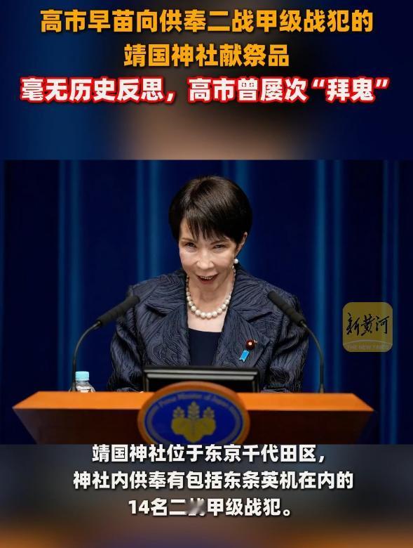 “时隔13年,日本又搞小动作了!”2026年4月21日,日本首相高市早苗,以“内阁总理大臣”的名义,向靖国神社供奉了名为“真榊”的祭品。这可不是什么个人行为,而是时隔13年后,首次有在任的日本首相,以官方身份向那个阴魂不散的地方进贡。 追溯起来,这桩刺痛历史、伤害无数受害国人民的行径,其祸根早在1978年就已埋下。那年,靖国神社偷偷摸摸将东条英机等14名甲级战犯合祀入内,连当时的昭和天皇都对此极为不满,从此终生再未踏足那个阴魂不散的地方。 把双手沾满亚洲人民鲜血的刽子手奉为“神明”,这本身就是对历史的亵渎。长期以来,靖国神社已经成为日本右翼势力否定侵略历史、试图为军国主义招魂的“精神圣地”。日本政客的任何一次参拜或供奉,都不是简单的宗教行为,而是对战后国际秩序的公然蔑视。 而上一次这么明目张胆做的,是安倍晋三。2013年12月26日,时任首相安倍晋三,以“日本首相”名义悍然参拜那地方,引发了中、韩等国的猛烈抨击,连美国都表示了“失望”。 此后,安倍转为“擦边球”模式,不再以官方身份供奉,之后的菅义伟、岸田文雄也纷纷效仿,以“个人或政党总裁”名义自费供奉。 说起来,高市早苗这个“黑马首相”,在上台前就没少“拜鬼”,此次更是连演都不演了。虽然她本人没敢亲自踏入所谓神社,因为她知道,一旦参拜,必将引爆东亚的外交地震。但她这次以官方名义供奉,已经公然挑战国际社会的底线。 因为这根本不是什么“祭祀英灵”,而是给军国主义招魂,是对无数死难者尊严的严重亵渎,更是对二战战后国际秩序的公然挑衅。她的所作所为,无疑是对被日本军国主义残害的千万亡灵,又一次公然的冒犯。 而面对日方的挑衅,中国外交部的回应掷地有声:“中方坚决反对!”发言人明确指出,“靖国神社是日本军国主义发动对外侵略战争的精神工具和象征,供奉着对那场侵略战争负有严重罪责的14名甲级战犯。”这一问题绝非日本内政,而是关乎历史正义与人类良知的大是大非原则问题。 一个不能正视历史的国家,注定没有未来。日本右翼政客在历史问题上的反复无常,不仅消耗着亚洲邻国的信任,更是在亲手把日本推向危险的深渊。 80多年前,他们曾以“圣战”为名,将亚洲拖入火海,无数无辜的百姓,因此失去生命。而日本,最终换来的是什么?是广岛、长崎的蘑菇云,是无条件投降,是长达近七年的盟军军事占领。80多年后的今天,他们如果继续在历史问题上开倒车,只会让日本在国际舞台上日益孤立。 高市早苗这次“隔空拜鬼”,毫无疑问是一次愚蠢的赌博。历史早已证明,歪曲历史、否认罪行、挑衅邻国,是绝对没有好结果的。正如那句老话所说:“玩火者必自焚”。日本如果一意孤行,继续在历史的伤疤上撒盐,最终烧毁的,恐怕只会是它自己的未来。