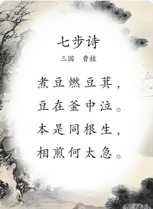 [捂脸]涨《语文》知识了。曹植的《七步诗》现代白话译文: 煮豆烧豆杆, 豆在锅里喊: 都是一个爹, 为啥要杀俺?