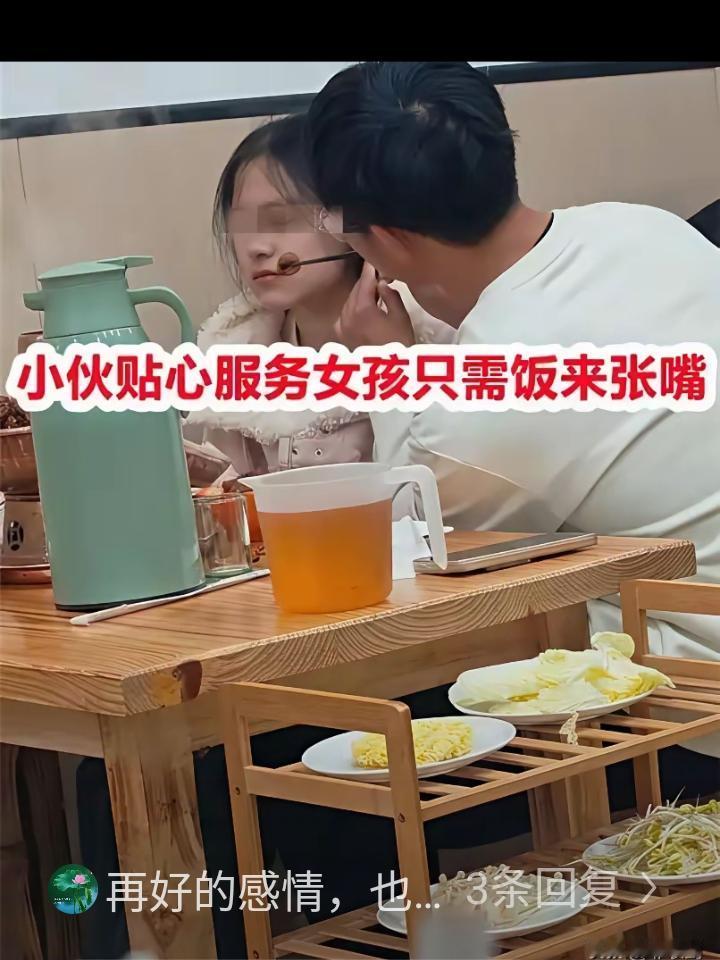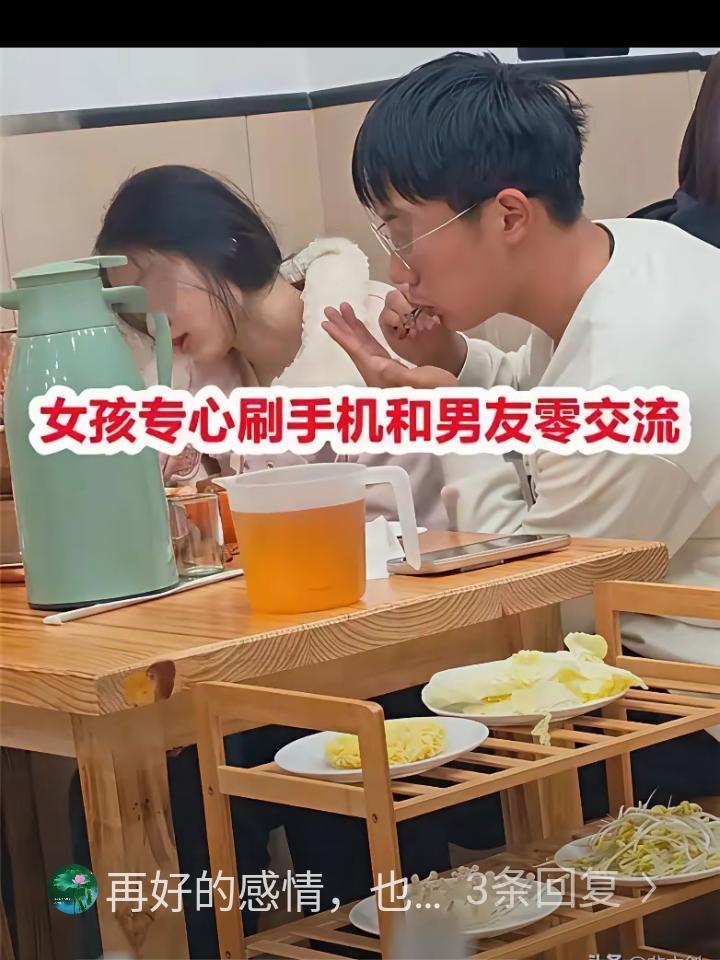 这个男孩太卑微了!一家火锅店里,男生全程小心翼翼给女友涮肉,吹凉,还一口一口喂到嘴边,生怕烫着。 女生全程低头看着手机,没有任何回应,两个人明明坐在一起,却像隔着很远。 有网友说,被人这样放在心上疼着,真的很幸福。也有人说,感情里,从来都不该只有一个人在付出。 看着这一幕真让人心里不是滋味。男生掏心掏肺地讨好,女生却连个眼神都懒得给,手机比眼前人重要多了。 爱情是相互的,不是单方面的小心翼翼和低声下气。一个人再怎么拼命付出,另一方无动于衷,这段关系早晚会失衡。与其这样委屈自己讨好别人,不如留点尊严爱自己。好的感情从来不是一个人撑着,而是两个人互相惦记、彼此回应。 各位读者你们怎么看?欢迎在评论区讨论。
