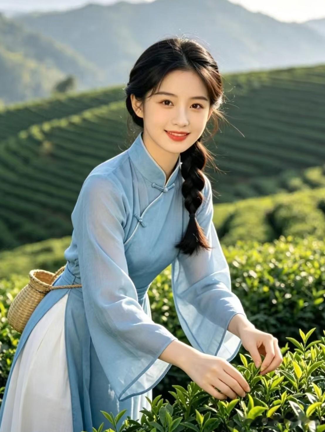 七律·茶山撷春 层峦叠翠织茶田,雾袂云裳绕指绵。 素手轻拈芽叶嫩,青衫浅映日光鲜。 篮中春味藏清露,鬓畔云丝拂软烟。 一曲清歌风暗和,偷将山色入吟篇。 【絮语】:以茶山春景为骨,绘女子采茗之姿。首联铺展茶园层叠之态,颔联细摹采茗动作与衣装神韵,颈联写春茶与鬓边云丝之韵,尾联以清歌与风相融,将山色与诗情一并收揽,尽显采茶之趣与山野清灵。