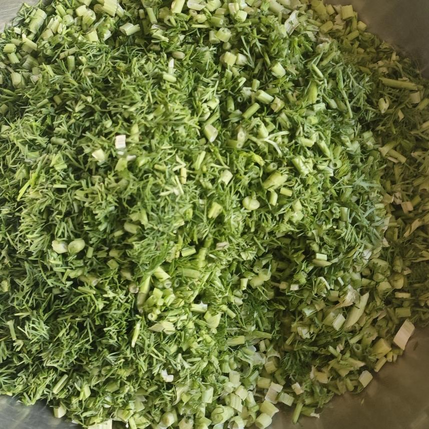 香菜小饼。大家注意看,100个人里边有99个人不知道把香菜放到开水锅里边烫一烫