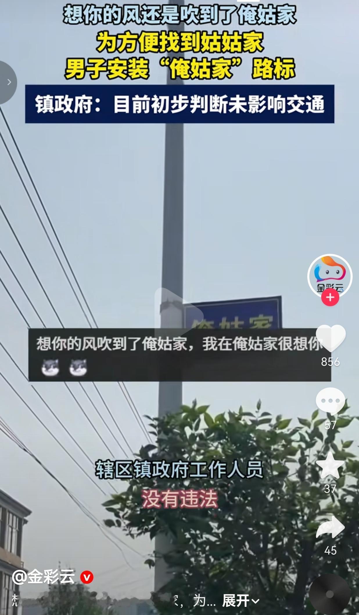 “俺姑家”路标火了!网友笑疯:以后这村直接叫“俺姑家村”得了 谁懂啊!这年头找不着路的最高境界,就是直接在村口路灯杆上,焊一块“俺姑家”的牌子! 这事发生在河南信阳淮滨县。一个小伙子每次去姑姑家都迷路,绕来绕去半天找不着村口,急得直挠头。 为了让自己和亲戚们再也不迷路,他干脆自己动手,做了一块蓝底黄字的牌子,大大方方钉在了姑姑家附近的路灯杆上,上面就俩字:俺姑家。 这牌子一挂,效果立竿见影。他说:“自打安了这个牌子,俺妈再也不用担心我找不到姑姑家了!” 视频一传到网上,直接给网友笑疯了。大家都说,这简直是史上最接地气的路牌,连导航都得自愧不如。 就连当地镇政府工作人员都回应了:“目前初步判断没影响交通,也没违法,拆它也没什么必要,就让它挂着吧。” 网友看到后评论说:哈哈哈哈这小伙子是个人才!以后高德地图一采集,这村直接改名叫“俺姑家村”了! 也有的网友说:我单方面宣布这是年度最佳路牌!我每次去亲戚家都得打三个电话问路,太懂这种痛了! 还有的网友说:这也太可爱了吧!以后路过的人都知道,这附近住了一户“俺姑”! 更有网友表示:政府工作人员都佛了,说没影响就让它挂着,这态度我给满分! 说实话,刷到这个视频的时候,我笑得眼泪都出来了。 你说,现在的路牌、导航那么复杂,绕来绕去还是找不到路,人家一个简单粗暴的“俺姑家”,直接解决了所有问题。 没有花里胡哨的设计,没有高大上的地名,就这么直白、这么土,但又这么好用,这么有人情味。 这哪是一个路牌啊,这分明是一个年轻人怕麻烦、爱家人的真实写照。他怕自己迷路,也怕其他亲戚迷路,干脆用最直接的方式,把这份牵挂钉在了村口。 你看,连政府工作人员都没为难他,一句“没影响交通就挂着吧”,透着一股子理解和温柔。 比起那些规规矩矩、千篇一律的地名,这种带着烟火气和人情味的“私人定制路牌”,反而更让人觉得亲切、温暖。 它不影响任何人,也不违反任何规定,只是给这片土地,添了一个可爱的小标记,也给大家添了一个乐子。 有时候,最土的办法,往往最管用;最直白的表达,往往最戳心。