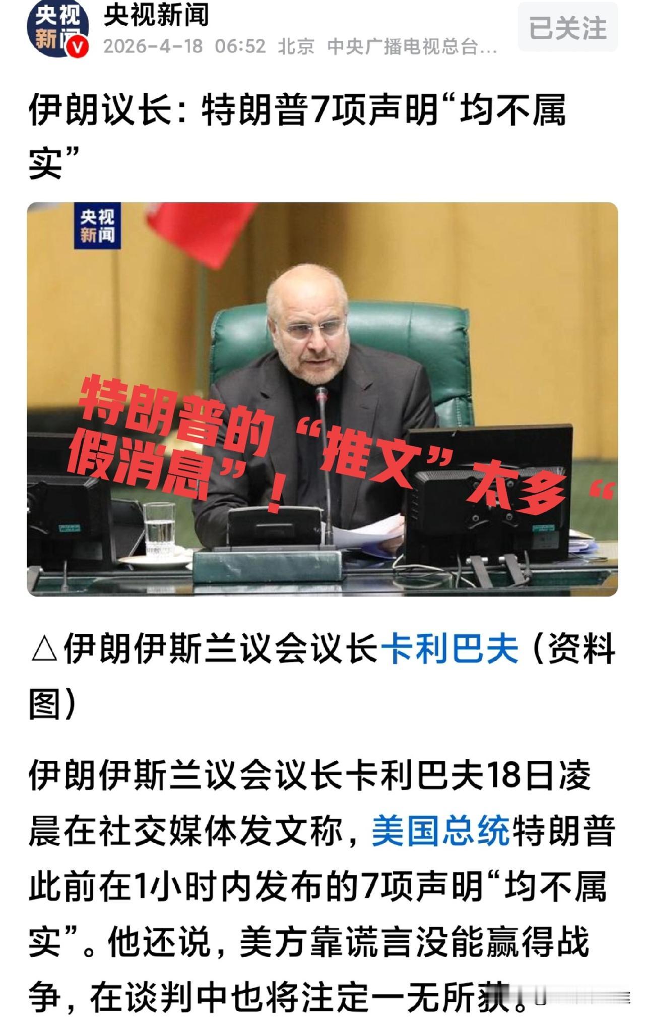 白宫一整天都在等德黑兰!美方已主动“自降身价”!伊朗谈与不判?不过特朗普先管住自己的“嘴”!才会有转机!他嘴里出来太多“假信息”太多“威胁言论”! 降身价1:4月20日 美国等了伊朗一天了 但伊朗没上桌!对于美国来说是很难得主动等谈判对手一天时间!这在美国历史上应该没有过的事情! 降身价2:原本没有让美国副总统参加谈判的,但最后特朗普还是启用了万斯前往巴基斯坦,以符合伊朗之前的“诉求”! 降身价3:特朗普表示 如果协议能达成 他本人亲自前往巴基斯坦签协议!这是特朗普此次主动有诚意的的表示。 降身价4:就在4月19日 ,特朗普表示 此次谈判 美国开出的条件很公道 很合理 也很适用于伊朗,伊朗也可以很轻易的接受,希望伊朗来参加谈判! 为此美国为了新一轮的谈判,事先也做出了许多“诚意”的事情,也代表了当下美国的态度,但是 美国每做出一件利于谈判的事情,特朗普后面就要加一句话“如果伊朗不参加谈判,美国将对伊朗史无前例的轰炸”或伊朗将面临前所未有的麻烦。 特朗普明知在做一件有利于美国有利于他本人体面撤回战争的事情,而美国也在做一些降低双方紧张氛围的动作,但特朗普就是管不住“嘴”,让伊朗看到当下的美国 一边递糖 又一边使棒子,让伊朗感觉这是一个“陷阱 ”,美国方诚意是假的,为此伊朗不想浪时间 来谈这种毫无结果的谈判! 然而整个美国政府的谈判代表都在等待老板发话,要谈什么,怎么谈,要达成什么目标,都在等待特朗普的“推文”,而特朗普最不可靠的就 是他的这张“嘴”,那些是真的,那些是假的,就算他身边的副总统或核心官员也不清楚。这不单是伊朗官中,就算美国官员也不能确认特朗普哪一句话是真的! 就如4月18日 InfoGram写道:“突发新闻:唐纳德·特朗普在任总统期间发表了55,654条虚假声明,平均每天近98条谎言。”从大选舞弊谬论到外交政策谎言,从气候误导言论到经济虚假吹嘘,他把总统讲台变成谎言加工厂,将政治信誉踩在脚下。 而特朗普的这张“嘴”是最难管的就是“谎话”太多,不实言论太多,威胁太多,这样的美伊谈判 还是最终依赖特朗普的一张嘴而已!