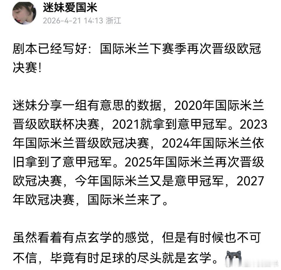 剧本写好了:国际米兰下赛季晋级欧冠决赛?国际米兰欧冠热点现场
