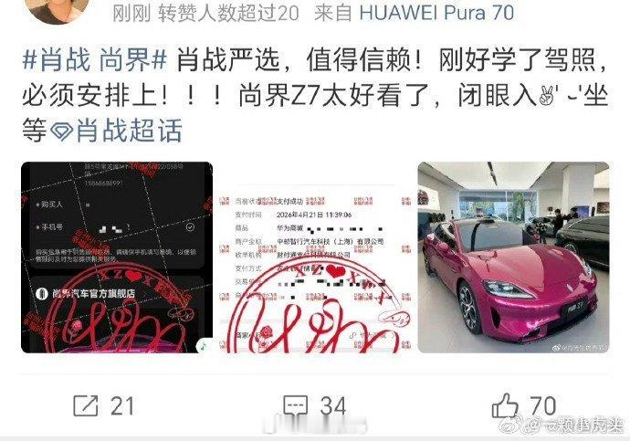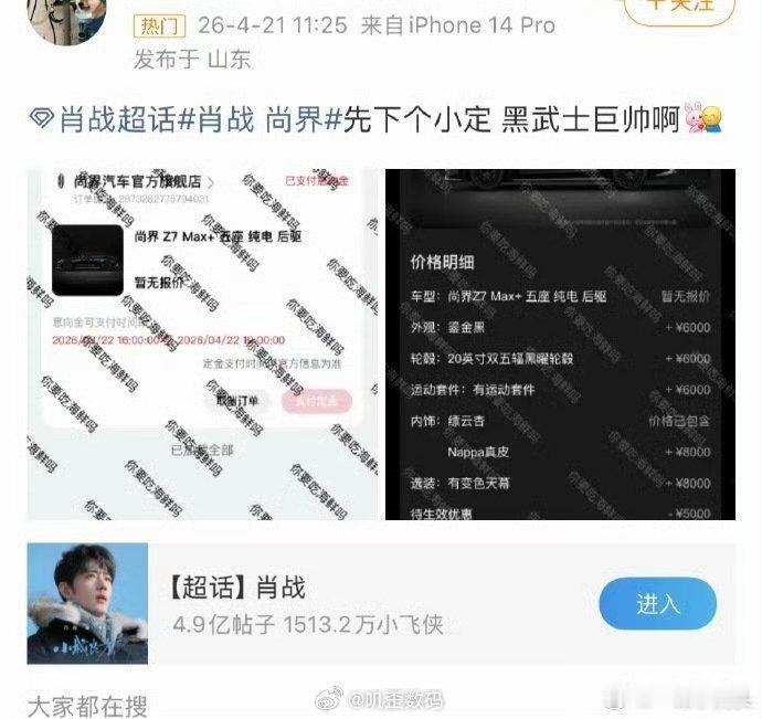 肖战 尚界肖战的粉丝太有实力啦,都开始晒单尚界小订了,这波销量不得逆天啊?就是千万不要跟有些媒体老师学,经常晒订单但是又不见提车