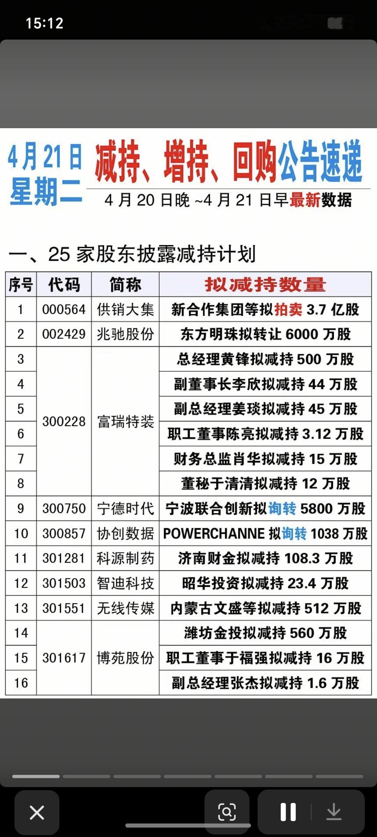 4.21周二 上市公司公告精选! 主要涉及: 1.资产重组、实控人变更、股权转让 2.增持计划、减持计划 3.增持、减持实施进展 4.法拍股份,收购资产等