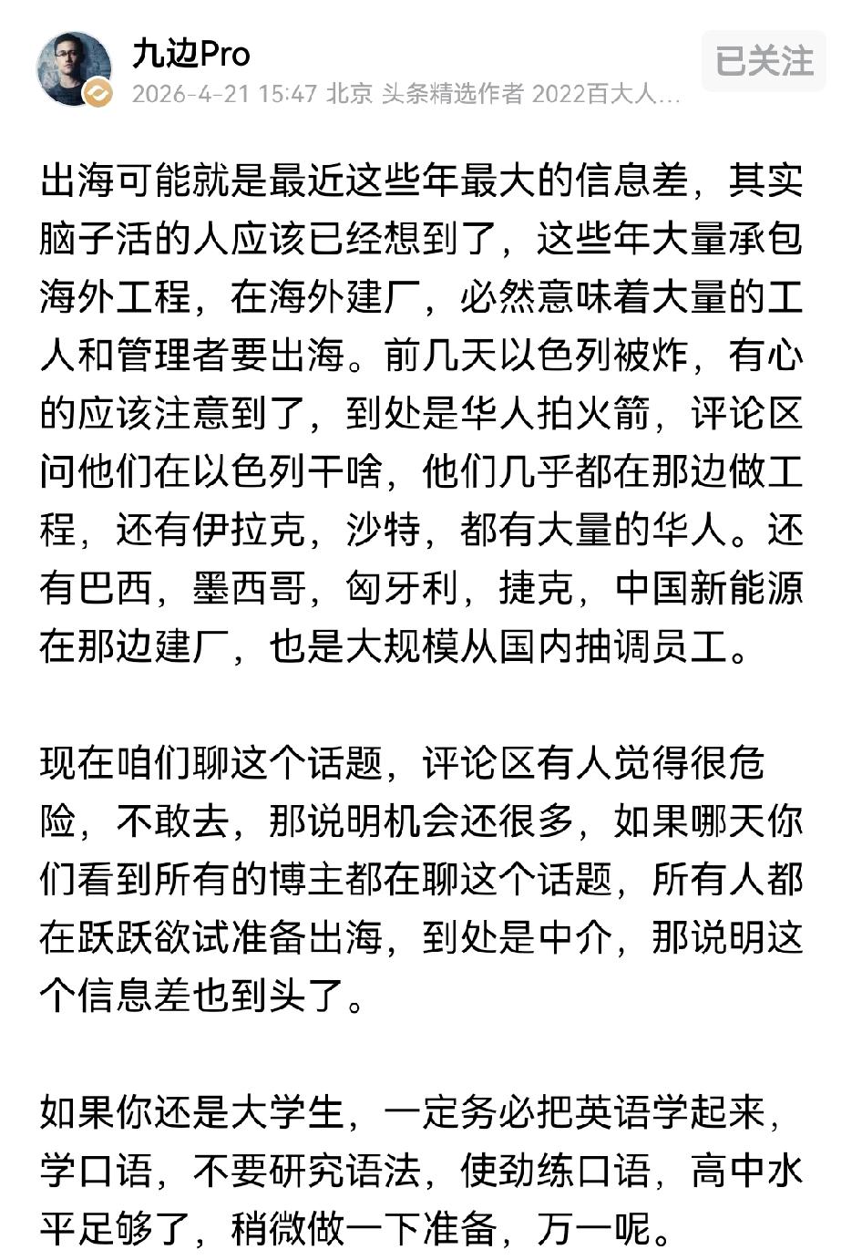 要把学英语看成可以父母一条赚钱的门路,这样学下去就有动力,如果觉得学英语啥用也没有,肯定学不好。 未来英语就是筛工具,英语差的上不了大学,未来大学培养的是全才,英语作为和世界沟通的语言很有必要,不是说英语比中文高级,是这个世界上还有太多人不会中文,但这个世界上机会又很多,我们要主动学习英语,掌握对方的语言再加上我们的智慧,未来在世界上,我们的机会更多。 未来很清楚,能熟练掌握中文和英语的人,比只会一门语言的人更有竞争力。