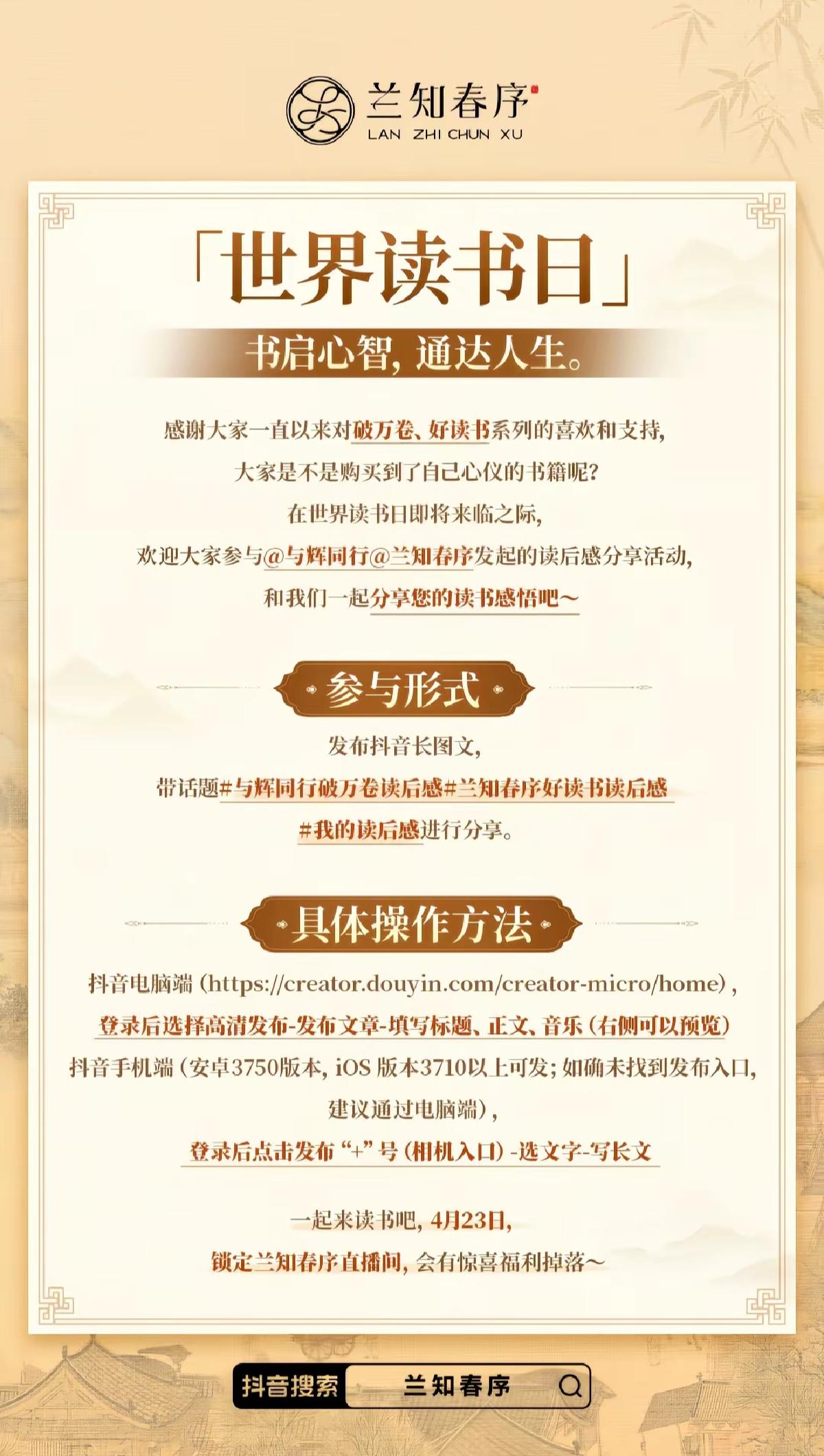 “世界读书日”书启心智,通达人生。 感谢大家一直以来对破万卷、好读书系列的喜欢和支持,大家是不是购买到了自己心仪的书籍哩呢?在世界读书日即将来临之际,欢迎大家参与@与辉同行@兰知春序发起的读后感分享活动,和我们一起分享你的读书感悟吧。 征集时间为4月21日14:00至23日10:00哦。