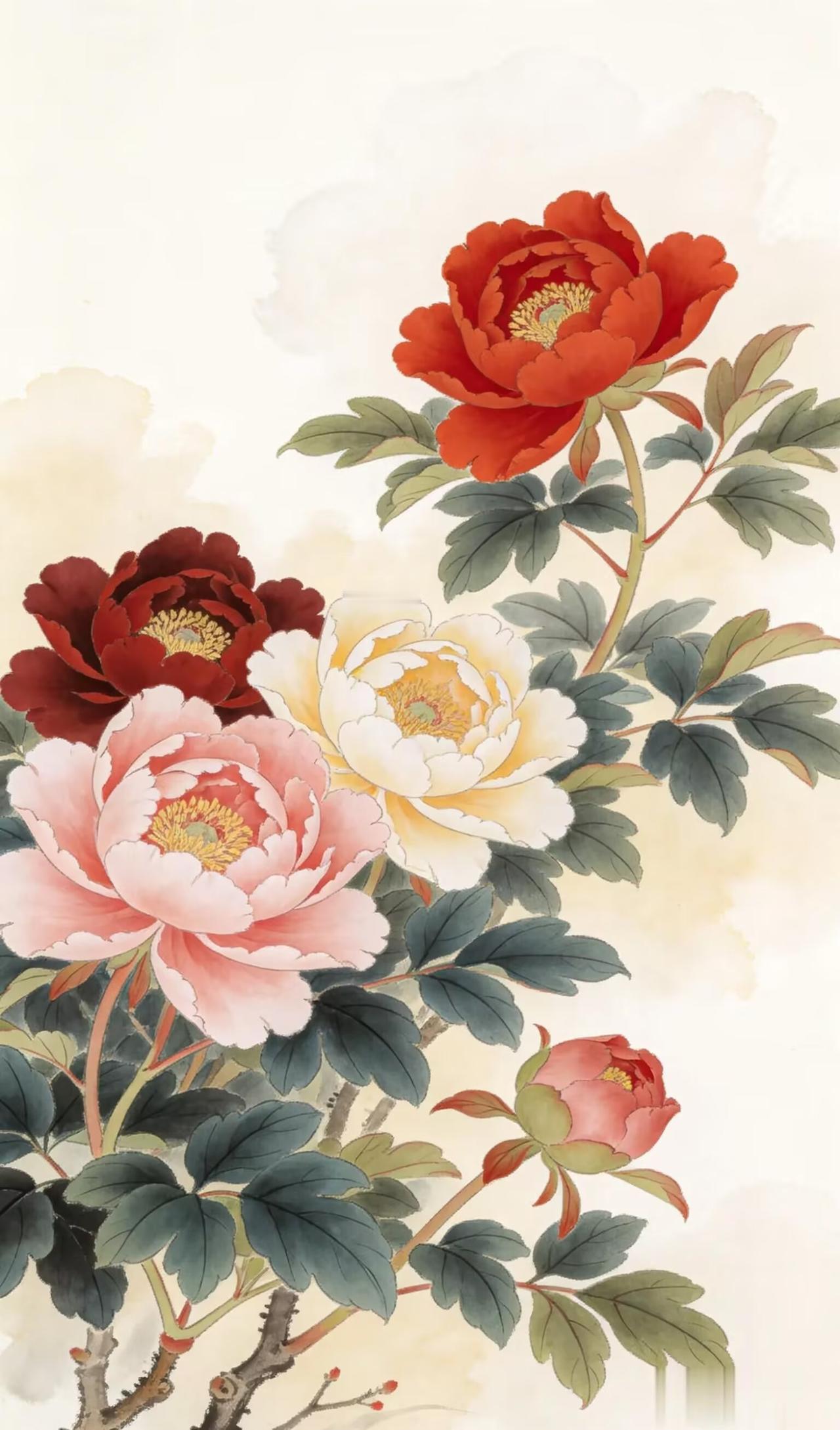 上联:出水芙蓉逢细雨, 下联:山涧牡丹迎日出。