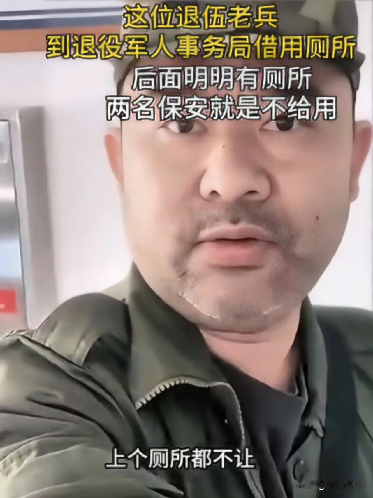 退伍大哥回服务站想上个厕所,却被保安死活拦在门口,连手机都要抢,硬邦邦甩一句:“今天就是不让你用!” 保安公司人员素质太差。他们常常盛气凌人,非要把手上握的那一点小得可怜的权利用到极致。真的很悲哀!同是社会底层人士,何必要为难自己的同道中人? 城中乘车可免费,到景点可享受优惠。可主管退伍的老兵之家,连老兵解决个内急这点小事就遭拒,能不让人心寒吗! 说到底,成立退役军人事务厅(局),不就是为退役军人服务的吗?连残疾退役军人借个厕所都不行,那试问成立这个单位为退役军人服务什么?