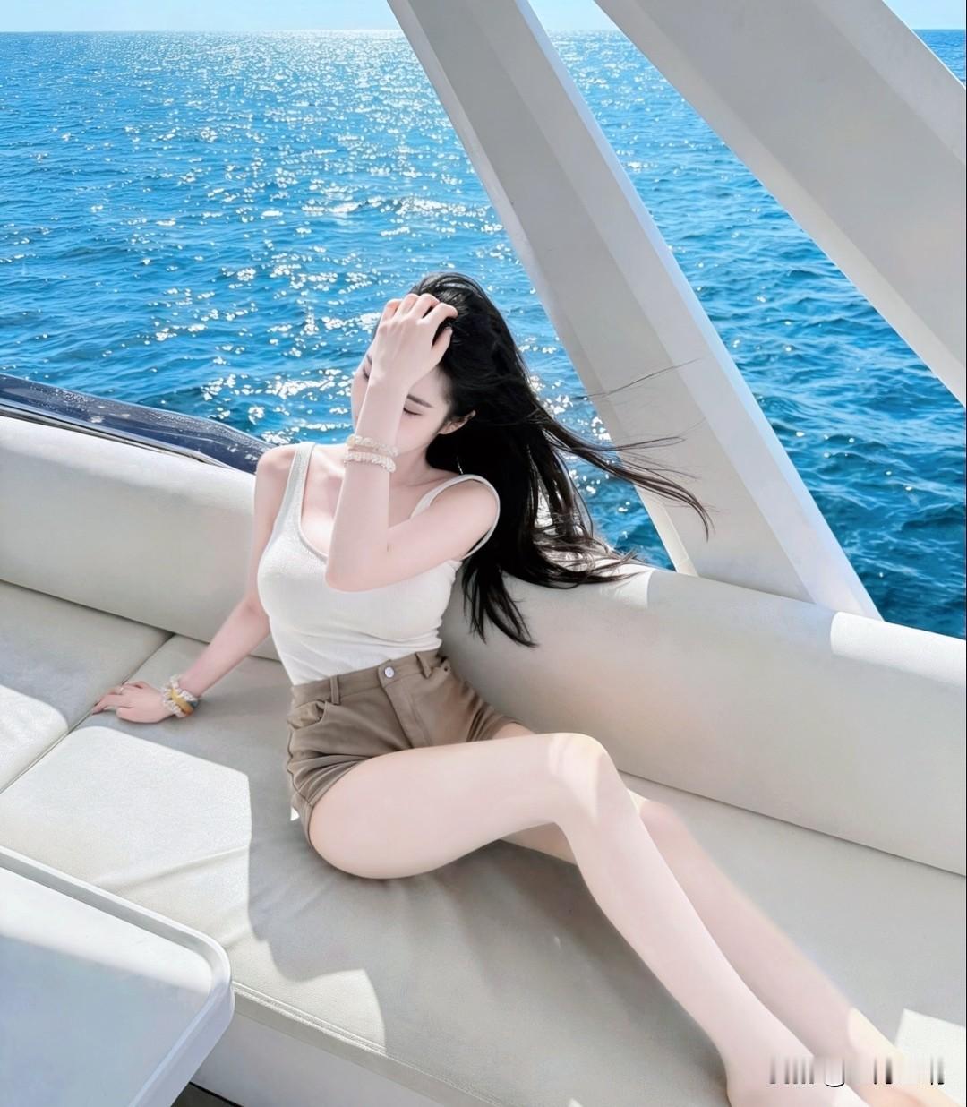 浅滩里的水手少女,像从日系动漫里走出来一样