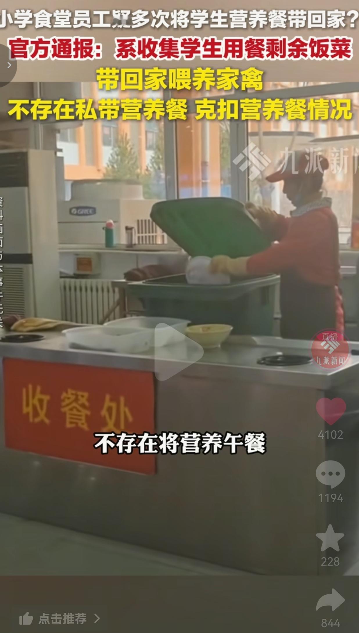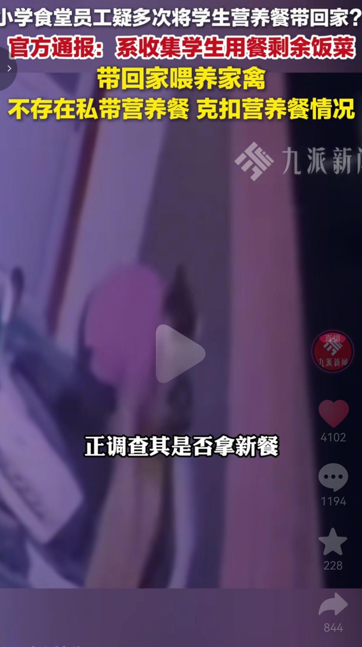 4月19日,广西陆川有网民在网上发布一段监控视频,画面里小学食堂的员工,拿着打包好的餐盒往电动车上搬,单看画面,怎么看都像是把学生的营养餐偷偷往家带。 消息一出来,瞬间引起无数网友的猜想:给孩子的专属营养餐,都被员工中饱私囊了?是不是暗地里克扣食材、偷拿没开封的新鲜餐食?各种愤怒的猜测满天飞,视频很快就冲上了热搜。 可官方通报出来,直接给这事定了性:这名员工拿的,根本不是没动过的学生营养餐,而是学生用餐结束后剩下的饭菜,她是收拾食堂时,把准备当厨余垃圾处理的剩菜剩饭清理打包,带回家喂自家家禽,经过全面核查监控和食材采购台账,不存在克扣营养餐、私带新鲜餐食的情况。 说白了,她从头到尾,都没碰过给孩子准备的未食用餐食,只是处理了本该倒掉的剩菜。 通报一出,评论区直接分成了两拨,吵得不可开交: 有的网友说“就算是剩菜剩饭,从食堂拿回家也不合规吧?这卫生安全谁来保证?万一被污染了,回头出事谁担责?” 也有的网友说:“说句公道话,人家拿的是剩的,又没动孩子的新鲜饭,没必要揪着不放吧?倒掉也是浪费,喂个家禽怎么了?” 还有的网友说:“问题根本不在剩菜!是大家对学校食堂的信任早就没了,一有风吹草动就炸锅,这才是最该反思的!” 更有网友表示:“别洗了,监控看着就是往电动车上搬,谁知道里面混没混新鲜的?台账这种东西,也不是不能做手脚啊!” 说真的,这事反转之后,我心里一点都不轻松,反而堵得慌。 大家愤怒的,从来都不是员工拿了点剩菜剩饭,而是这件事背后藏着的信任危机。 家长们怕的,是给孩子的营养餐,被克扣、被挪用、被偷拿,可食堂的操作全程封闭,家长看不到、摸不着,只能靠监控视频里的画面自行脑补。结 果官方通报一出,真相是处理剩菜,可之前积攒的愤怒和不信任,早就深深埋下了根。 一边是家长们刻在心里的焦虑,一边是官方白纸黑字的通报,两边都有自己的立场,却谁也说服不了谁。 大家吵的,从来都不是这几盒不值钱的剩菜,而是学校食堂的透明化问题。 如果食堂的食材采购、制作、分发、剩菜回收全流程,都能清清楚楚摆在台面上,主动接受家长和社会监督,哪会有这么多无端的猜测和争议? 说白了,家长们要的从来不是完美无缺的食堂,而是实打实的知情权和安全感。 你把每一个环节都公开,把剩菜处理这类细节也说明白,不用等视频发酵、不用等官方通报,谁还会揪着一段画面就脑补大戏? 别让家长的焦虑,最后变成一场无意义的网络争吵。 食堂的问题,从来都不是某一个员工的过错,而是校园食堂的管理,什么时候能真正撕掉“模糊”的标签,做到让所有家长放心、安心。 信任不靠一张通报撑着,靠全流程透明;家长要的不是完美食堂,是看得见的安心! 对此,你怎么看? 来源:九派新闻
